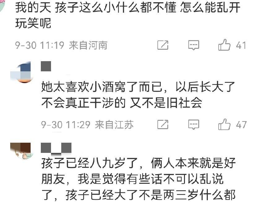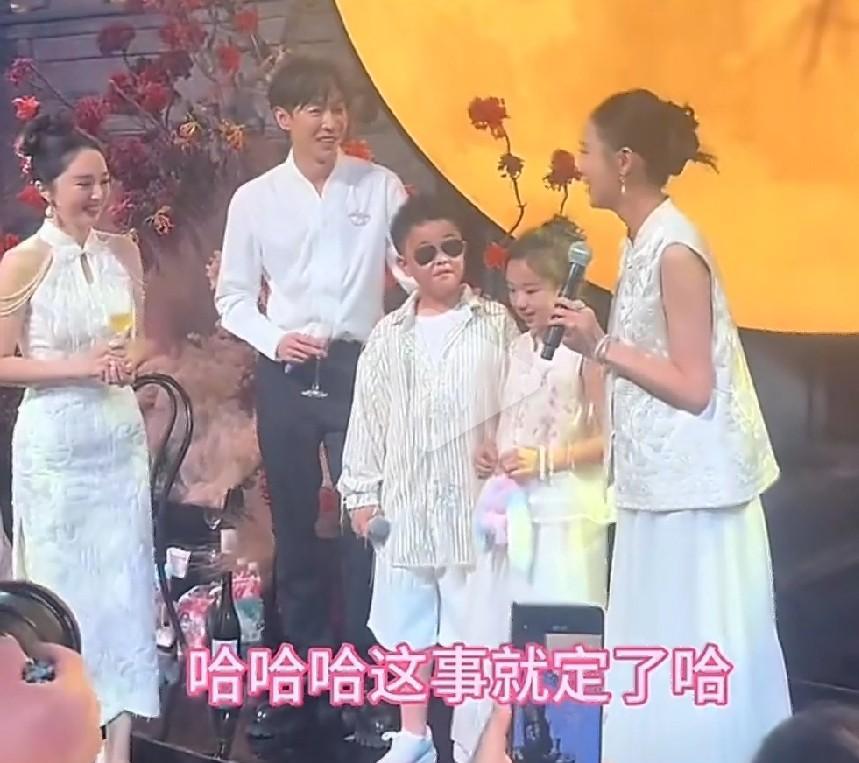 董璇和张维伊的婚礼上,佟丽娅拉着小酒窝站在儿子朵朵身边问台下宾客:“般配不?”宾客齐齐大喊:“般配!”佟丽娅:“那这事儿就这么定了,视频为证!” 小酒窝一脸懵懂,不知道佟丽娅说的是什么意思,朵朵则戴着墨镜,酷酷的微笑,真就是翻版的陈思诚。 看得出来佟丽娅真的很喜欢小酒窝,现在就想定娃娃亲,让小酒窝未来当自己的儿媳妇了。 不过有网友觉得佟丽娅用成年人的思想去干涉两个孩子的未来不太好,就算是开玩笑也不应该这样。 不过小编觉得佟丽娅和董璇是好姐妹,朵朵和小酒窝又是一起长大的,青梅竹马,这个设定不管是在现实生活中还是小说里,都会被人撮合开玩笑说是一对儿。 小酒窝是佟丽娅看着长大了,佟丽娅很喜欢小酒窝,所以才会忍不住开定娃娃亲这种玩笑,等两个孩子长大后,她肯定不会强行干涉的。 而且网友们平常没少说小酒窝和朵朵般配,怎么网友能说,佟丽娅就不能说了呢?