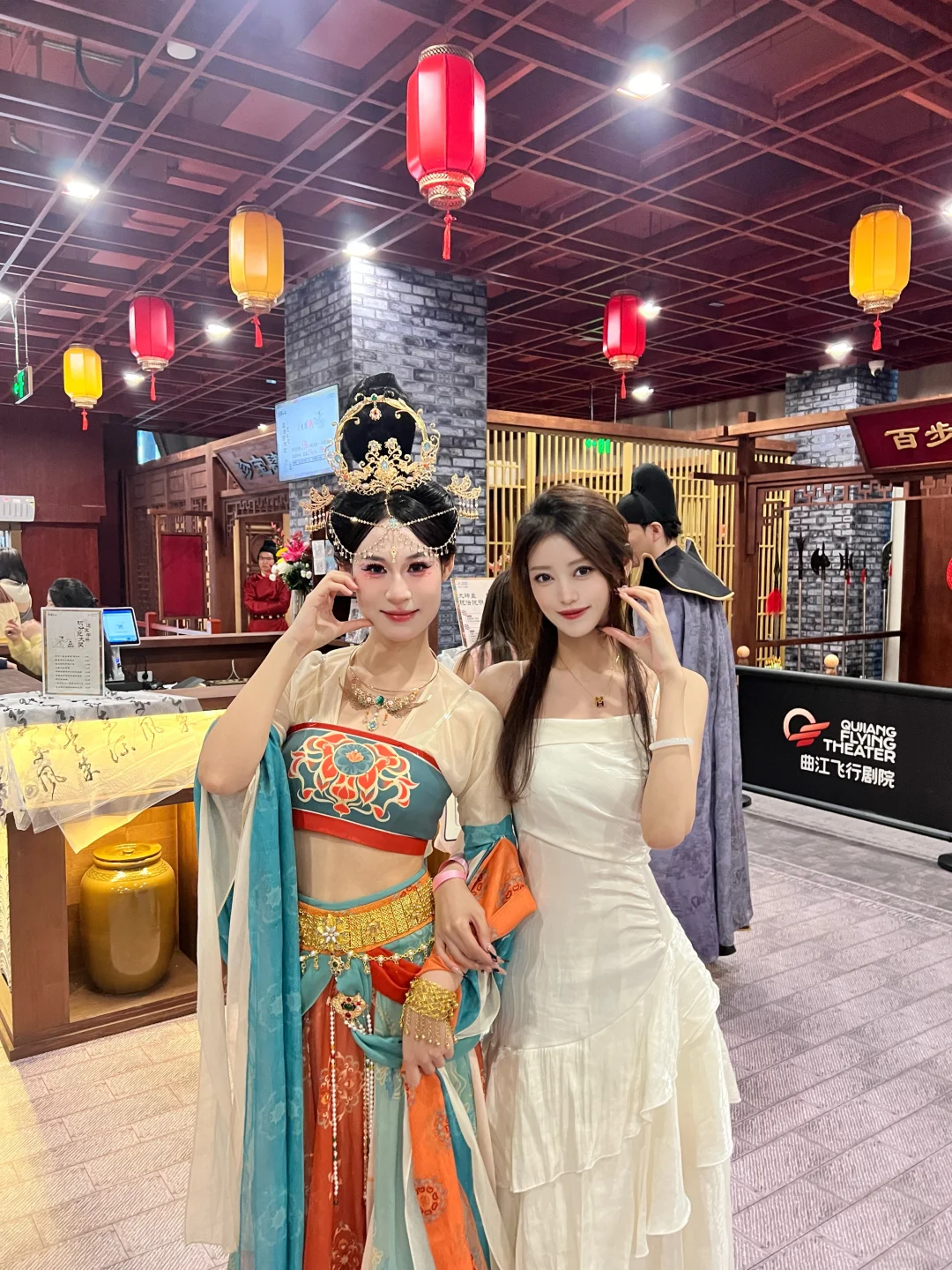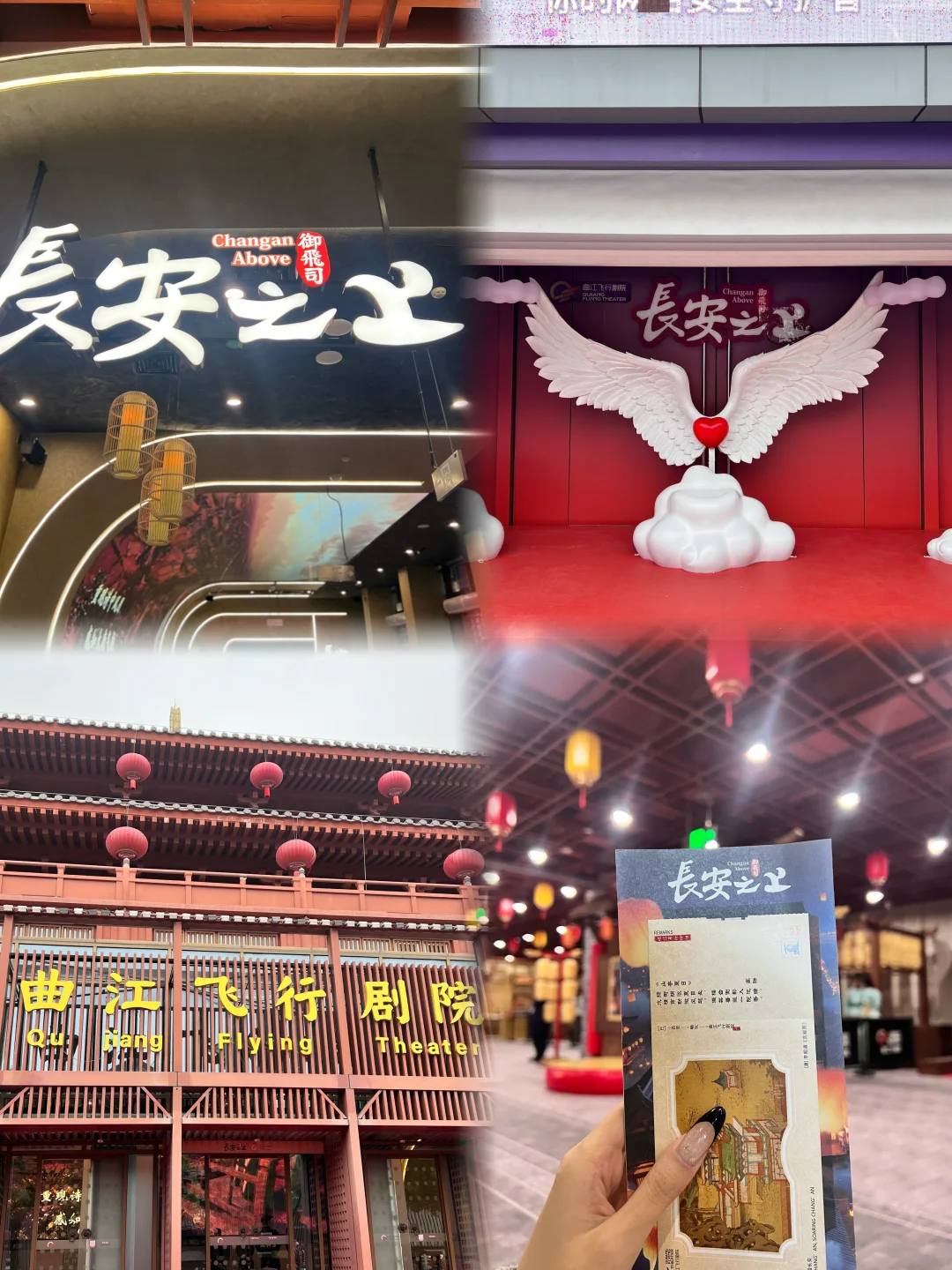 着看盛唐的剧院——曲江飞行剧院首飞 场馆大到惊艳,独特建筑设计+顶配影视设备 体验感真不错 分享省时游玩动线 照着玩效率拉满: 长安光域:必和李白、胡姬NPC互动!和诗成功还能合照,沉浸式穿越盛唐,古风氛围直接拉满 观影:《长安之上》太绝了俯冲穿越城墙时 风感、失重感超真实,仿佛真的翱翔在长安上空;《中国之上·西安篇》视角超震撼,视觉、听觉全被征服,五感体验直接拉满 百戏坊市集:各种小游戏超有趣 互动性强 体验感拉满😌 惊喜根本停不下来!抓到不倒翁小姐姐必须拍拍~ 首飞日NPC巡游直接炸场,盛唐密盒、皮卡晨、杜甫、李白全来了,还有御飞使互动,打卡就能领小礼品🎁 出行指南:地铁超方便 自驾也有停车场🅿️停车无忧 这波首飞福利和体验,错过真的会哭!