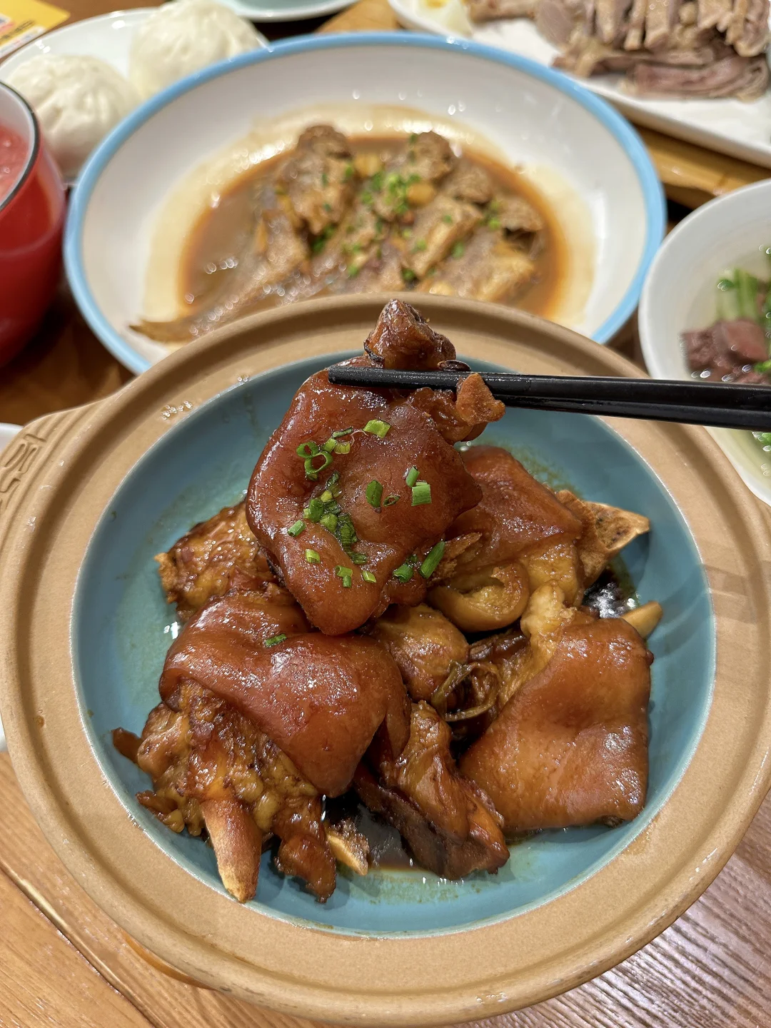 猪蹄炖得油亮红润,浓油赤酱裹满每一寸皮肉,外皮Q弹,里面细糯!