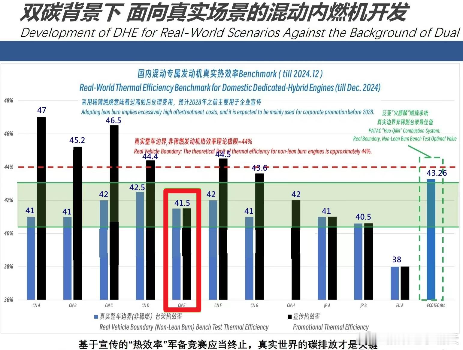 前段时间邱工说某网红车企采购1.5T发动机的事,一堆宣传45%、46%热效率的车企去竞标,结果一个真实整车边界热效率超过43%的都没有(图1)。