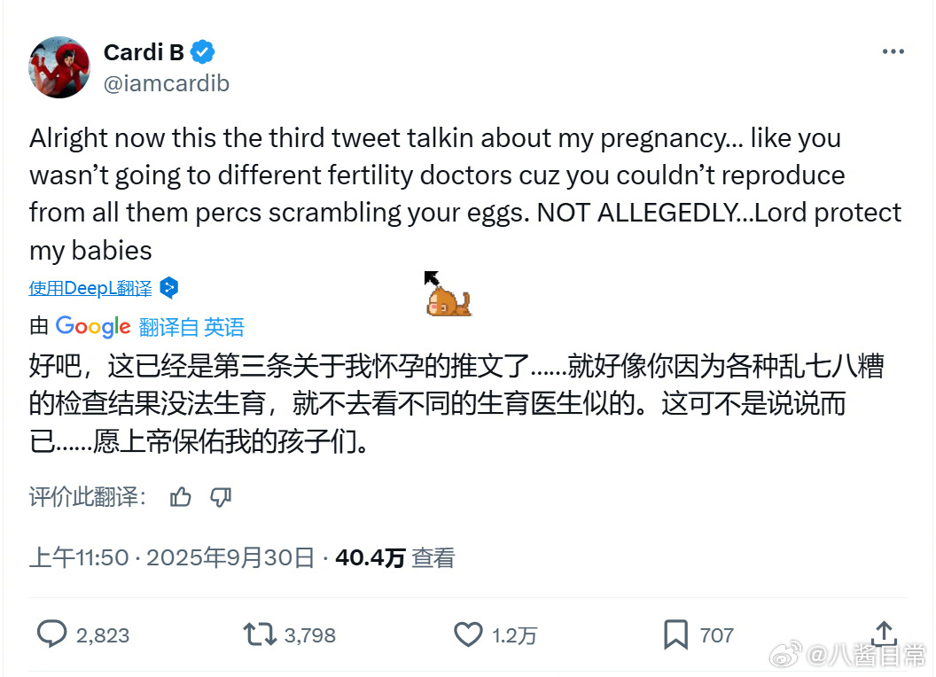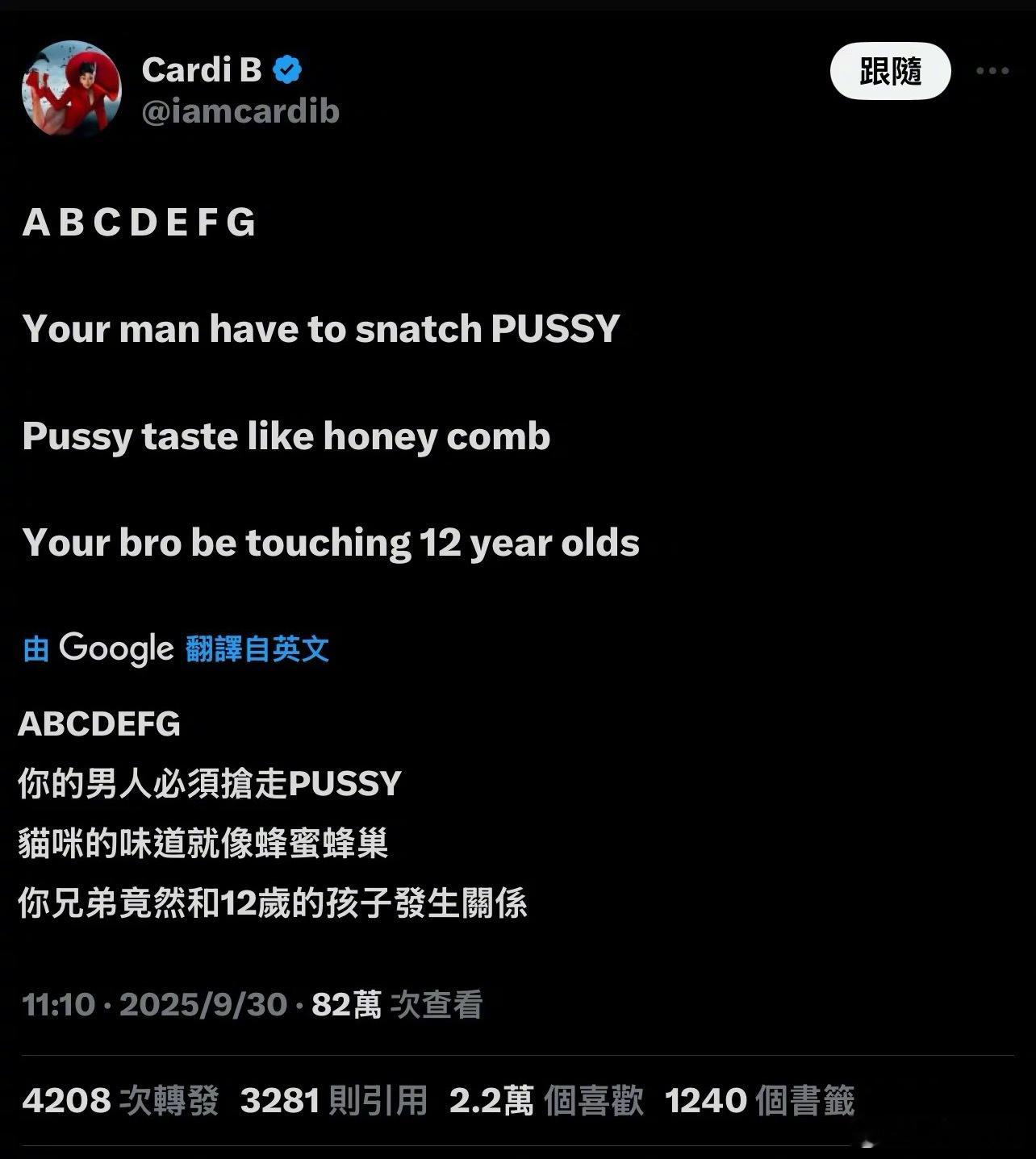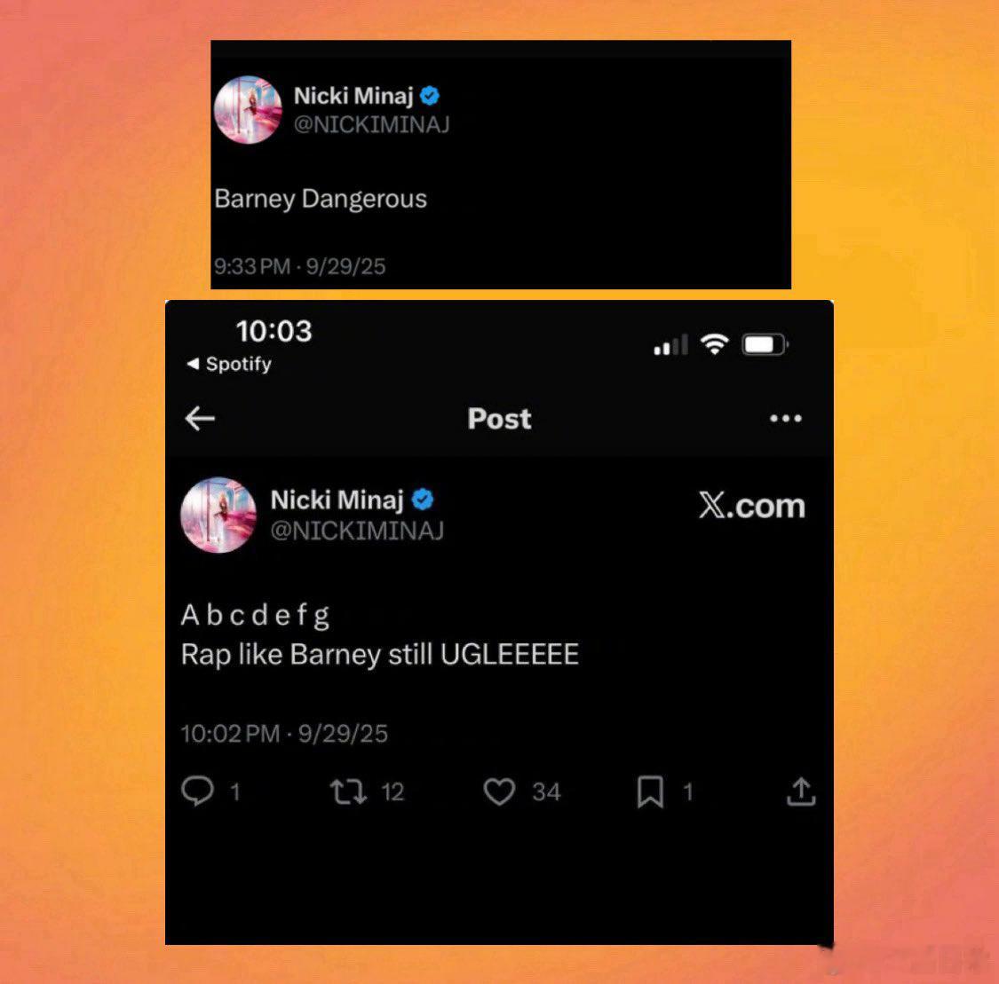 麻辣鸡和Cardi B再度开撕还互甩黑图。麻辣鸡说Cardi B新专大甩卖,Cardi B让麻辣鸡跟同期的霉霉、蕾哈娜等人比,“比不过她们因为你比她们都差, 你出道的时候我还在上高中,你到底在跟我比什么?”