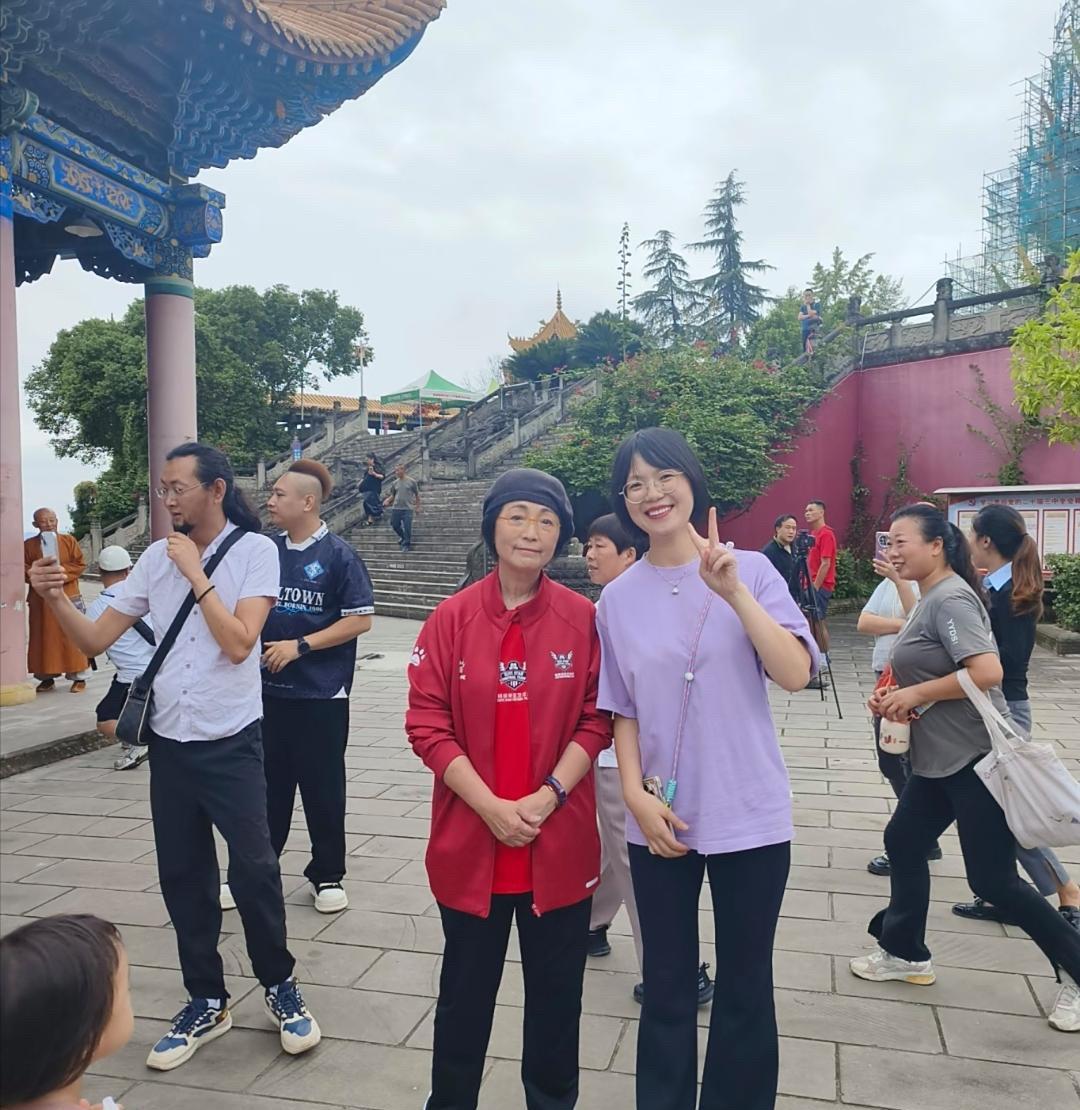 苑琼丹现身四川灵泉寺祈福,她真人看起来好年轻,个子很矮,非常的有亲和力![赞][
