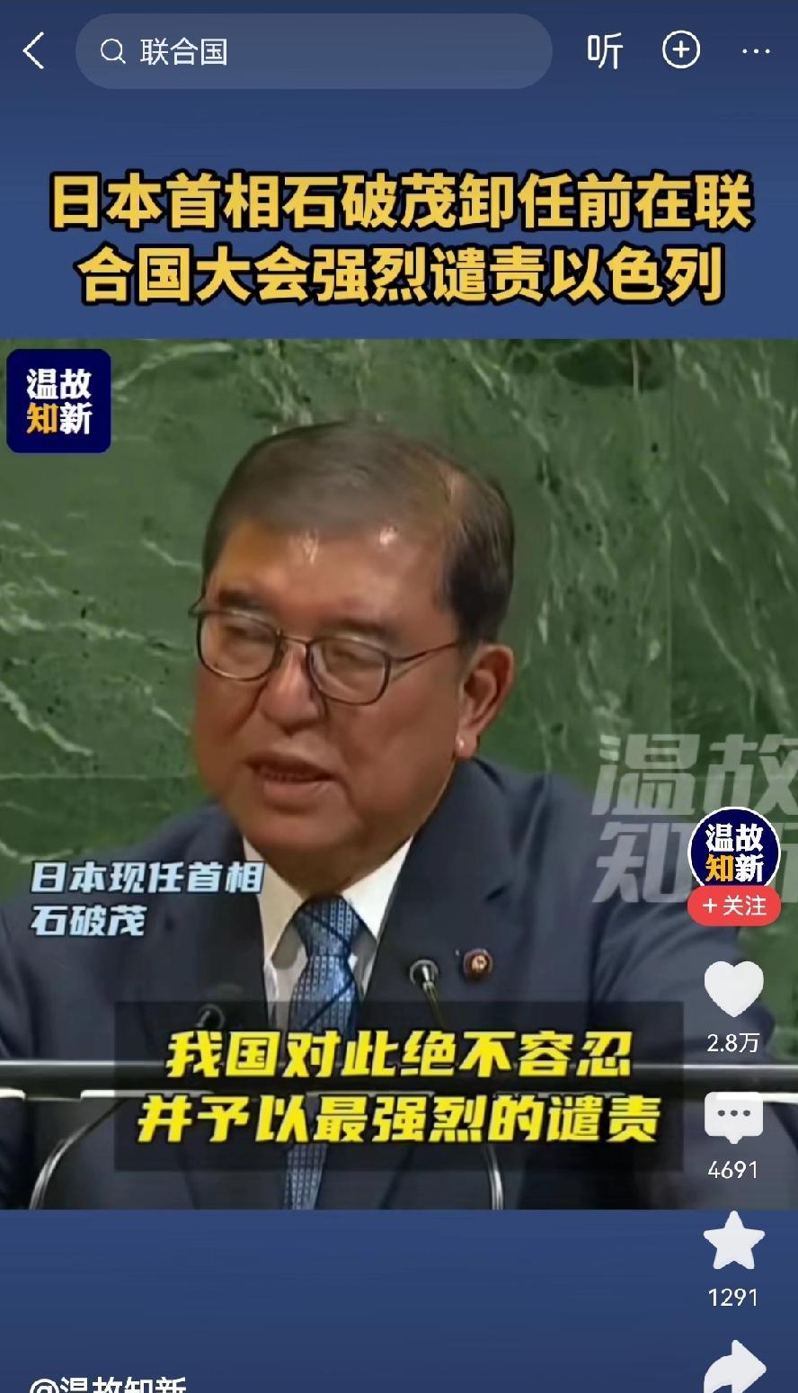 原来我们都错怪日本首相石破茂了!石破茂在联合国的讲话,字字诛心,把以色列批的体无