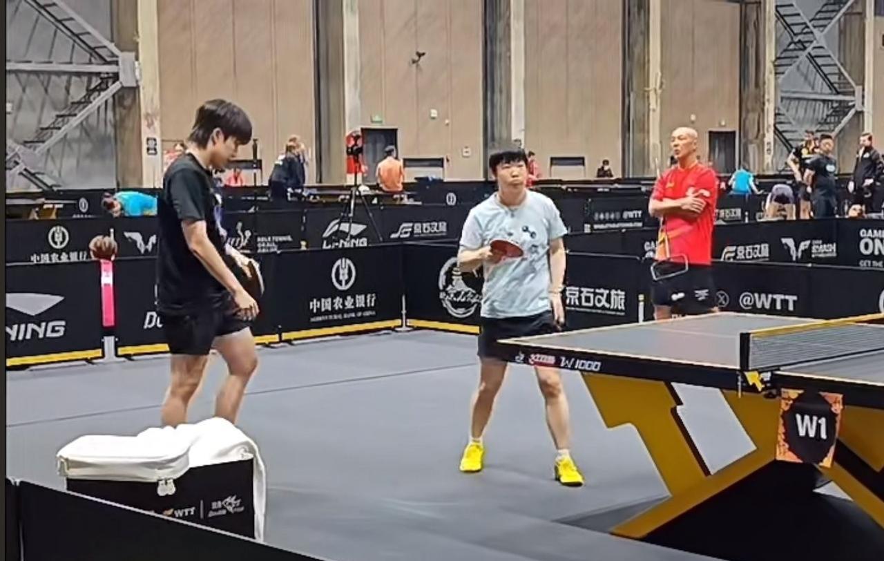 莎莎和楚钦开始练混双了。 时隔小半年没打混双,俩人还真的就赛前练半个小时,就要拿
