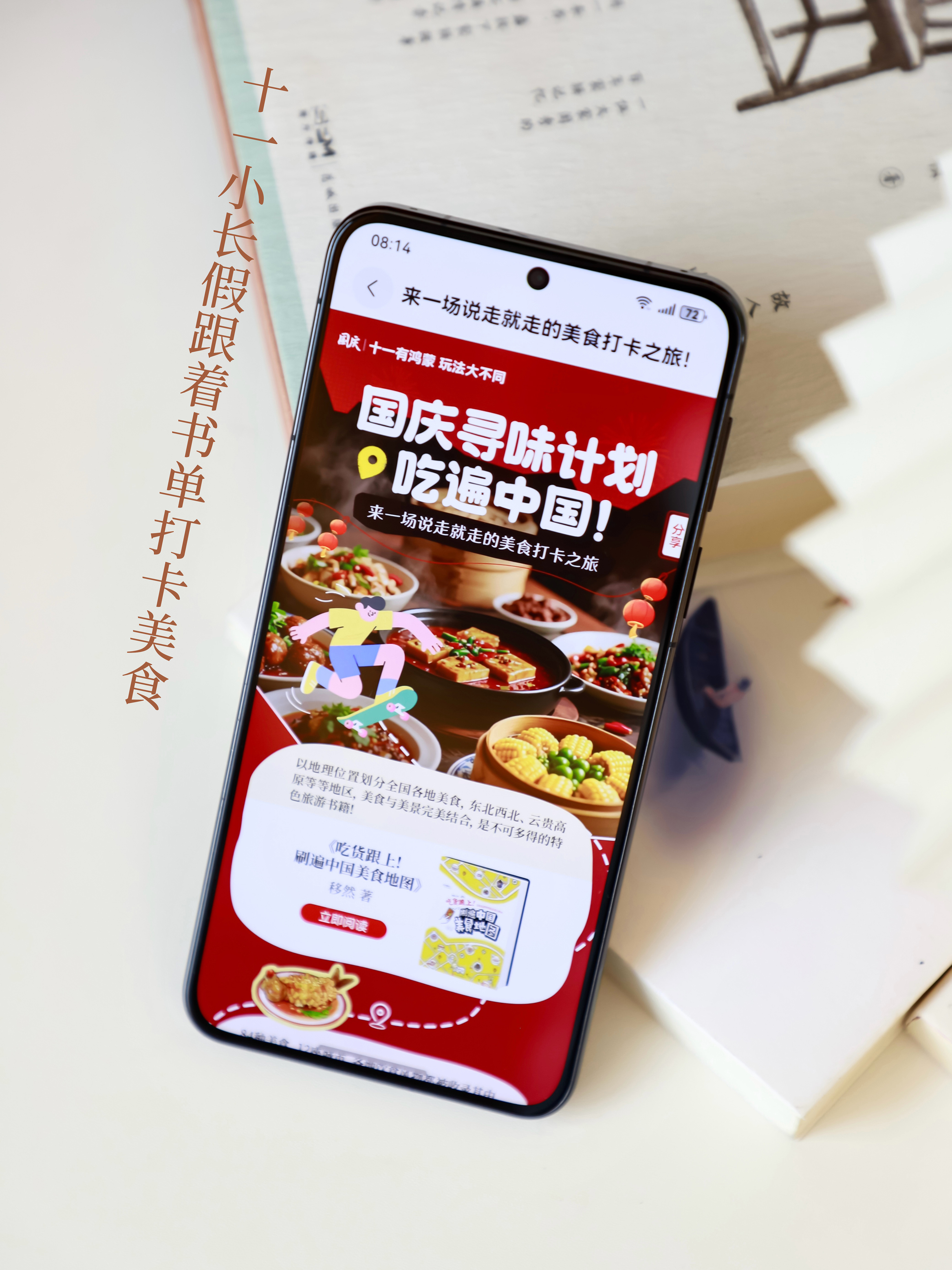 要说节假日出行,那我可真是很有经验啦嘻嘻嘻,不仅能避开人群区和商业化景点,还能准确搜罗本地人才找得到的地道美食哟(傲娇脸),这可都多亏我爱读书呀!hhh就不和你们卖关子啦~我这么信心满满的踏上旅程,是因为我发现了一个宝藏书单喔~华为阅读为了让大家十一出行玩的更尽兴,特别推出了“国庆寻味计划-吃遍全国”系列书单!这简直就是我们美食爱好者的福音哇~这下不管是去哪里旅行都可以准确找到当地的特色美食啦,跟着知名作家吃吃喝喝,简直不要太美哟~顺便还能了解到一些当地的文化底蕴,这不相当于随身带着一个导游嘛,再也不要去走马观花式的无聊打卡啦~爽歪歪~