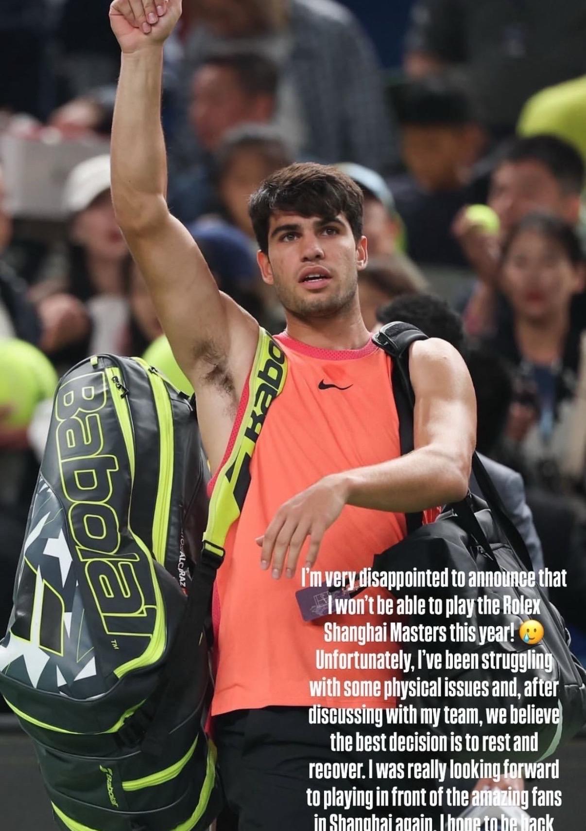 #阿尔卡拉斯退出上海大师赛# 阿尔卡拉斯宣布因伤退出今年上海大师赛。