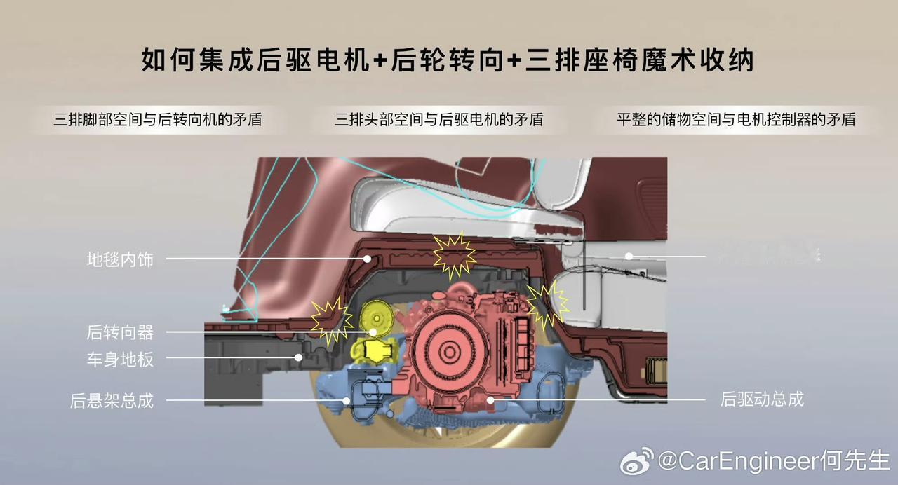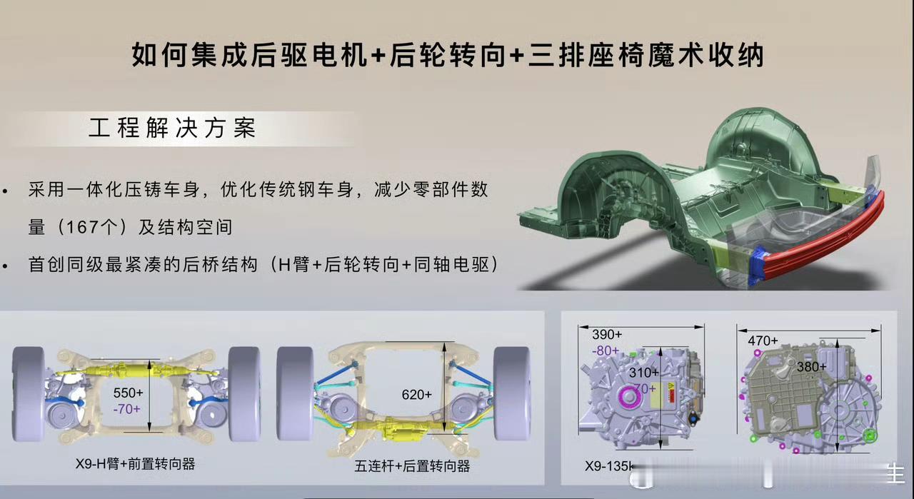 你知道汽车后轮也能转向吗 后轮转向,现在是各大车企高端车用力卷的配置。 后轮转向除了费钱考验工程能力,其他都是好处: ❶后轮转向让低速时转弯半径更小 大型汽车在低速时转弯能力普遍是个问题。 如果在汽车转弯时,后轮增加一个【反向】的转向,就能增加汽车低速灵活性。 在低速转向时,前后轮的反向转向能够缩小转弯半径达20%。让一些大型车也有如同小型车的操控以及敏捷性。 比如小鹏X9的转弯直径是10.8米,跟他的转弯直径一样的还有丰田卡罗拉,也是10.8米,同样还有主打灵巧的Smart精灵,他的转弯直径是11米。 这意味着你开这台将近5.3米的大车,即使在城市道路的转弯,调头,也都不是问题。 ❷后轮转向增加高速时稳定性 带后轮转向的车,高速时能够通过后轮和前轮的【同向】转向,以对抗车辆的转向过度,降低车辆侧滑发生可能性,改善高速行驶稳定性。 湿滑路面,汽车在高速避让或并线时,容易出现转向过度,就是我们所说的甩尾。 而后轮转向可以更快速的改变汽车行驶方向,就像是瞬间移动到隔壁车道一样,提高行车安全性,稳定性。 ❸后轮转向让系统复杂,非常考验工程能力 小鹏X9全系标配后轮转向,并且把后轮转向,三排魔术折叠,双腔空悬集成在后桥中,还能满足第三排地板纯平,这工程实力不一般。 小鹏X9全球唯一标配后轮转向MPV【来自懂车帝车友圈】