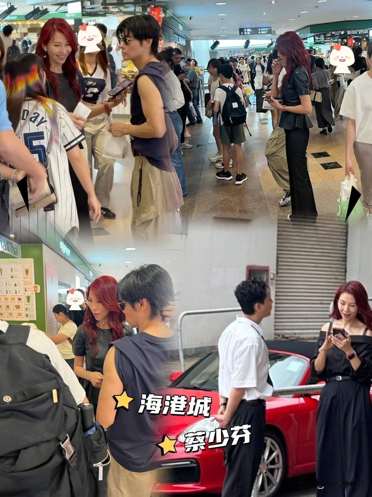 海港城遇见蔡少芬张晋夫妇!网友在商场买东西遇见娘娘,本人又高又瘦,状态维持的相当好,完全看不出年龄,张晋也很年轻,手臂肌肉线条很明显。蔡少芬染了一头红发,前几天,网友还遇到她和黄宗泽一起拍戏,张晋这几年反而很少拍戏了