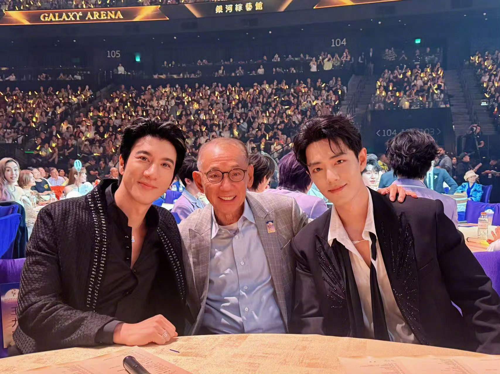 肖战参加湾区升明月晚会直接成为了合照焦点每张照片都超帅[么么哒]肖战成了合照焦点