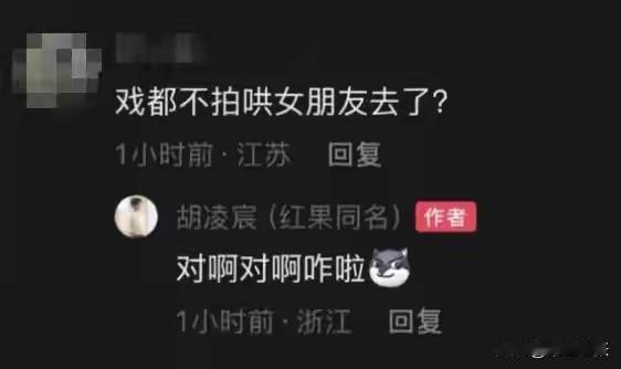 业内人士爆料,某短剧男主拍摄两天后,因和女朋友吵架,撂下工作跑去异地哄女友。 随后网友扒出该演员是胡凌宸。他凌晨单方面通知剧组停拍,把助理留在酒店后自行离组。他还给剧组工作人员留言:“我不拍了,我回杭州了,你们找别人替补吧”。聊天记录显示,胡凌宸曾抱怨吻戏太多,只能借位拍摄,否则就罢演。他原本还想推荐女友来演这部戏的女主。 事情发生后,有网友在胡凌宸抖音视频下留言:“戏都不拍哄女朋友去了?”胡凌宸回复:“对啊对啊咋啦”,目前该回复已删除,其账号开启了防打扰保护功能。 9月29日,该剧女主李梓荧发布视频,证实胡凌宸开拍2天就跑路。目前该剧已换男演员拍摄并杀青,制作完成后将上线。 公开资料显示,胡凌宸2006年生于辽宁,其女友柒可昕也是演员。