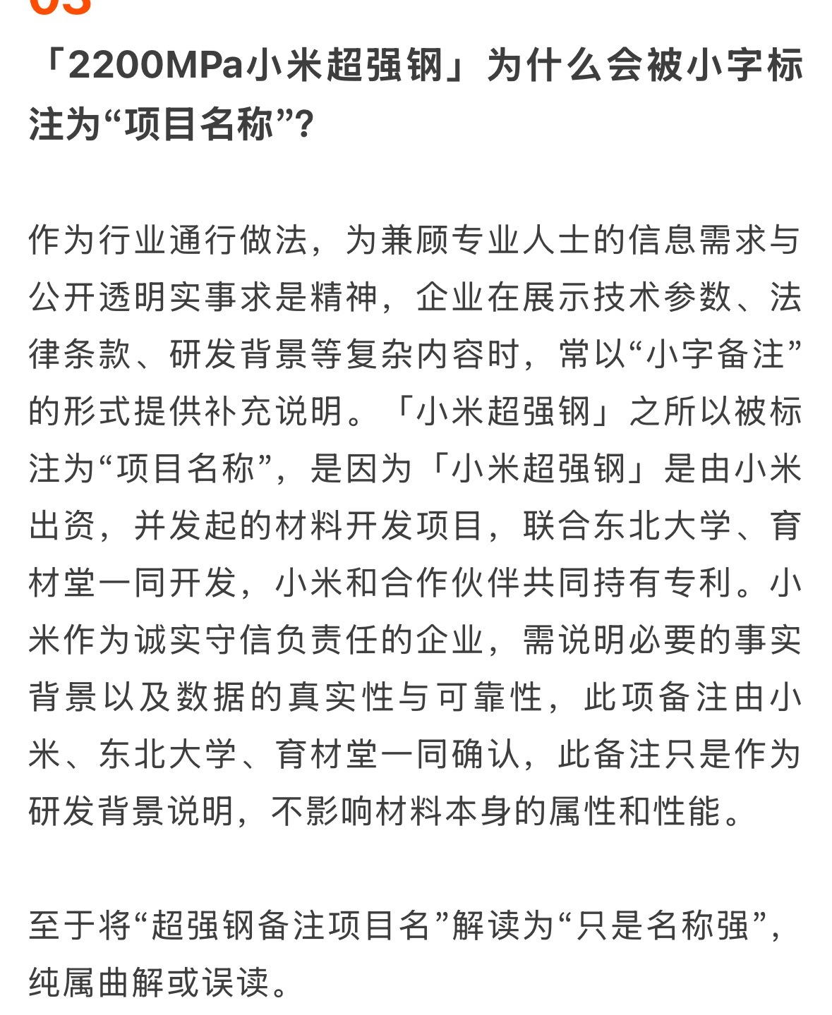小米、东北大学、育材堂一同确认,此备注只是作为研发背景说明,不影响材料本身的属性和性能。