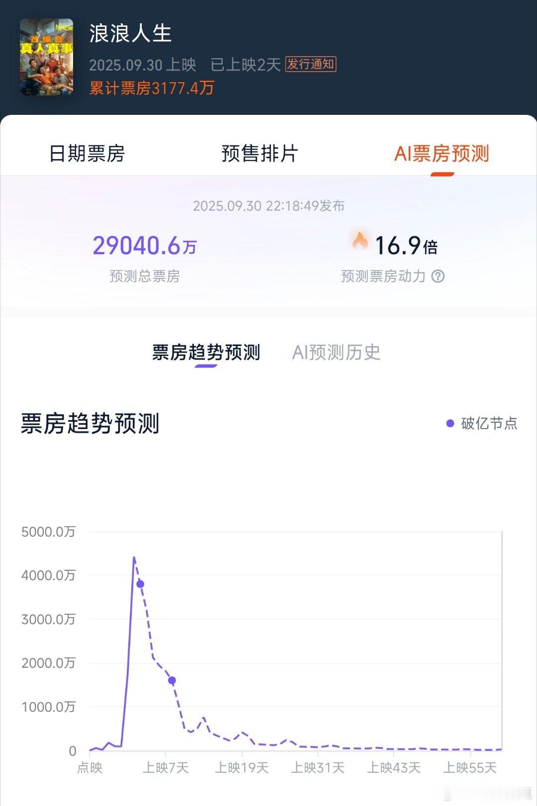 黄渤和范丞丞的浪浪人生开局票房就不行,加上口碑崩盘,目前猫眼预测总3.81亿,灯塔2.9亿,基本确定扑街[doge]浪浪人生票房破2000万