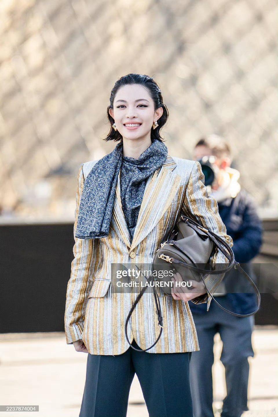 钟楚曦把G社当站姐用钟楚曦巴黎时装周造型绝!金色套装勾勒身形,尖头鞋加持气场超