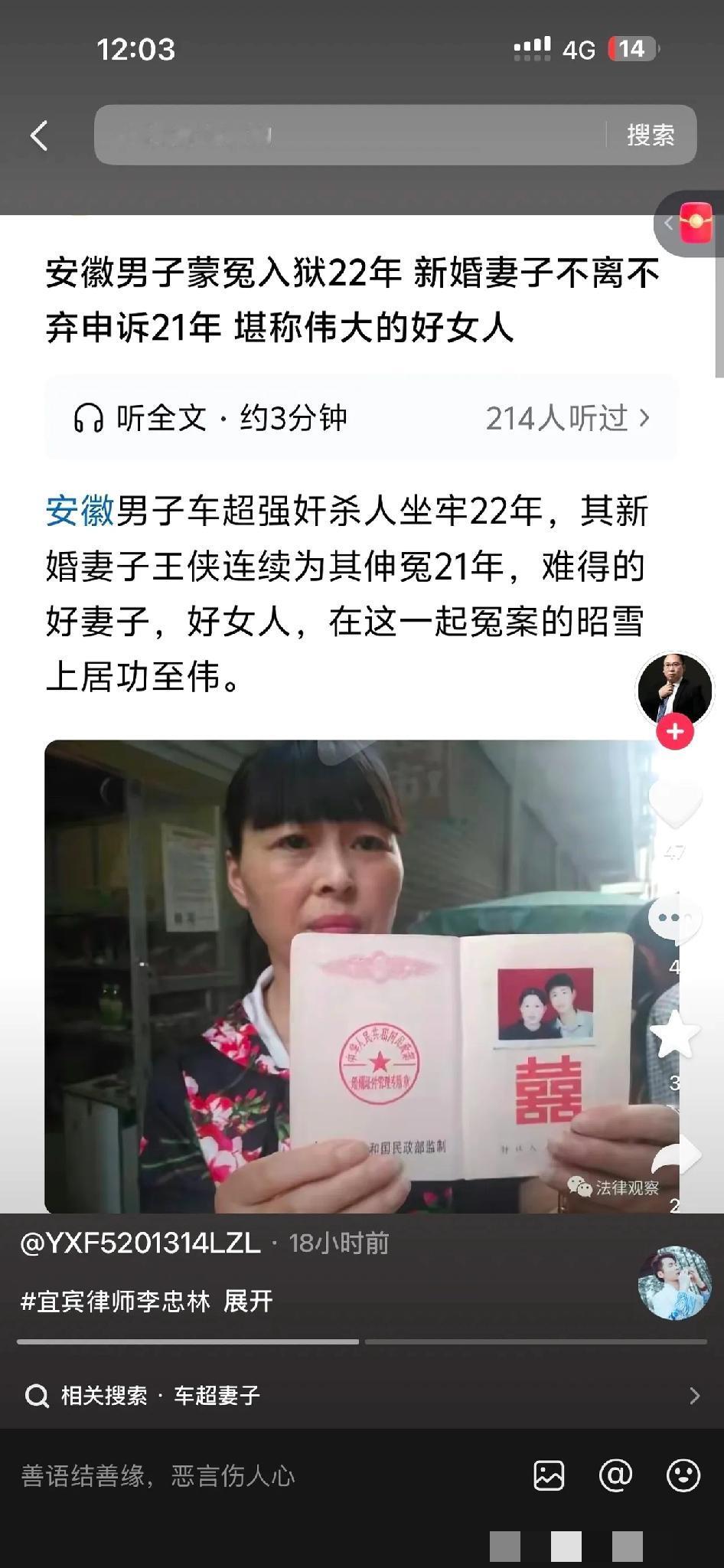 看车超案真的破防了,25年冤狱啊,人生能有几个25年? 新婚就蒙冤入狱,全靠