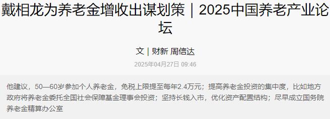 这才是真正为人民着想的人!原中国人民银行行长戴相龙提议:“将贪官全部财产划入养老储备基金,以减少年轻人的压力!” 要知道现在的养老问题已经成了家家户户都操心的大事,年轻人肩上的担子早就压得喘不过气了,戴相龙的提议正好切中了这个痛点。 根据国家统计局公布的数据,2023年咱们国家65岁及以上的老人已经有21676万人,占了总人口的15.4%,60岁以上的更是快到3亿人了,这标志着咱们已经进入中度老龄化社会了。 更让人揪心的是老年抚养比,达到了22.5%,说白了就是每4.4个劳动年龄的年轻人,就要负担1个老年人的养老。要是到了辽宁这样的老龄化严重的地方,压力更大,每3.27个年轻人就要养1个老人。 看起来似乎也能接受,可别忘了,现在30岁上下的年轻人,早就把养老规划提上了日程,就像那位每月定投1000元个人养老金、再花5000元买商业保险的林小姐,以前月底还得“吃土”,现在为了养老只能勒紧裤腰带。 这不是个别现象,数据显示:60.3%的人都觉得31到45岁必须开始攒养老金,连29岁以下的年轻人都比两年前早了6.7个百分点开始焦虑养老。 更现实的是,北京一家普通养老机构每月就要6611元,从60岁住到82岁光这笔钱就需要170多万,还没算看病、吃药这些意外支出,年轻人每月那点工资既要还房贷车贷,又要攒养老金,简直是在“负重前行”。 养老基金的日子也不好过。戴相龙早就在公开场合说过养老金有缺口,甚至直言“靠公共养老金养老根本不行”。有报告预测未来5到10年,这个缺口可能达到8万亿到10万亿元,2019年的时候,社保基金剔除财政补贴后的实际盈余已经连续第七年为负,这窟窿可不是小数目。 虽说2024年底社保基金总资产刚过3.3万亿,但面对越来越多的退休人员和不断增长的养老需求,这点钱还是显得捉襟见肘,年轻人未来的养老金能不能按时足额领到,谁心里都没底。 就在大家为养老钱发愁的时候,贪官们却在疯狂敛财,不过好在国家的“天网”从没松懈。 过去十年,“天网行动”从120多个国家和地区追回了1.4万多名外逃人员,光赃款就追回来666.2亿元,党的二十大以来这几年就追回了218.36亿元,2025年才过去大半年,追回的赃款已经达到225亿元。 这些钱本来就是老百姓的血汗钱,现在追回来正好能派上大用场,截至2024年末,已经有88.71亿元的罚没股票划进了社保基金,这说明这条路完全走得通。要是把每年追回的几百亿赃款都算上,2025年这225亿就能覆盖340多万北京养老机构的月费,要是分摊到年轻人身上,能少缴多少养老保险费可想而知。 那些曾经被贪官塞进海外账户、用来买豪宅名车的钱,要是真能悉数划入养老储备基金,简直是“变废为宝”,既惩处了腐败,又帮年轻人松了松肩膀,这算盘打得谁能不赞成。 更重要的是,这提议正好契合了养老基金的补充逻辑。现在社保基金的钱主要靠财政拨款、国有资本划转和投资收益,2024年财政性净拨入才696.48亿元,而贪官赃款每年追回的数额就占了不小比例。 戴相龙自己也说过,中国有65万亿国有净资产,还有海量国有资源,完全能做大养老储备,而贪官财产正是其中最该被用好的“特殊资产”。 毕竟这些钱本就不属于个人,与其让它躺在银行账户里,不如拿来缓解养老压力,让年轻人不用再为了攒养老金委屈自己,不用再担心老了没保障,这种“取之于贪、用之于民”的操作,简直是顺理成章。 想想看,年轻人每月抠抠搜搜缴社保,担心未来养老金不够用,而贪官们却曾靠着权力大肆敛财,现在把这些赃款划进养老基金,相当于让腐败分子“间接”为养老事业做了贡献,也算是给被辜负的民心一个交代。 戴相龙能提出这主意,说到底还是懂民生疾苦,知道年轻人的压力在哪,知道养老基金的缺口在哪,更知道这些不义之财该有怎样的归宿。要是这提议真能落地,不光能给养老储备基金添砖加瓦,更能让年轻人看到解决养老问题的希望,这才是真正站在老百姓的角度想问题。