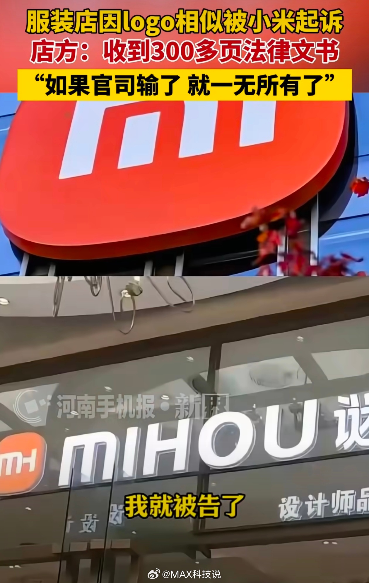 服装店称因logo相似被小米起诉基本就是小米logo上加了一横