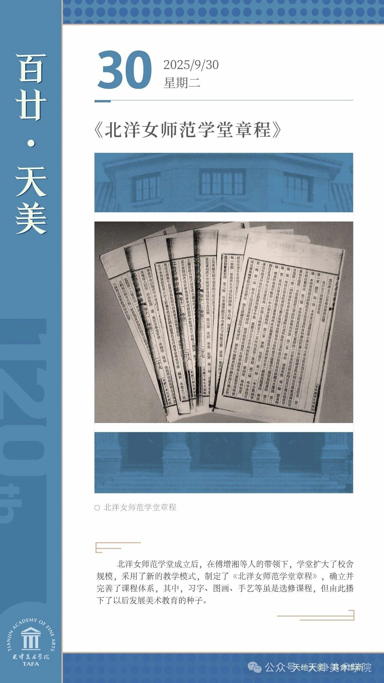 《北洋女师范学堂章程》 北洋女师范学堂成立后,在傅增湘等人的带领下,学堂扩大了校舍规模,采用了新的教学模式,制定了《北洋女师范学堂章程》,确立并完善了课程体系,其中,习字、图画、手艺等虽是选修课程,但由此播下了以后发展美术教育的种子。 (设计:高潇纯 编辑:白欣茹 姜金汐)
