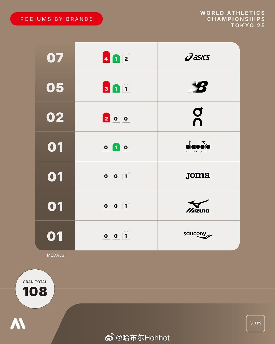 2025年东京田径世锦赛品牌站台占比田径说一哈田径