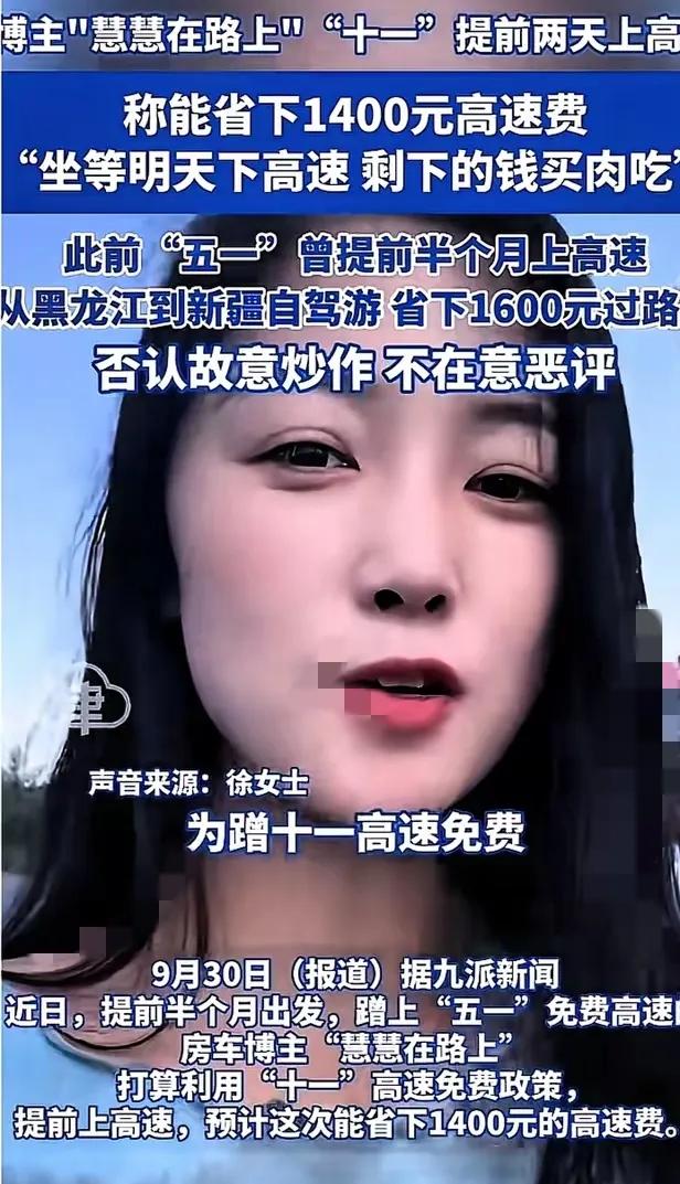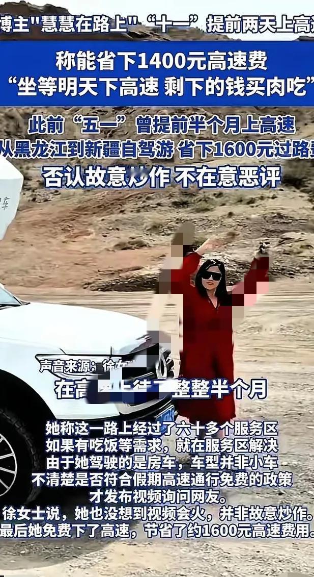 “这操作也太‘绝’了吧!” 为省1400块高速费, 内蒙古大姐十一前两天就扎进