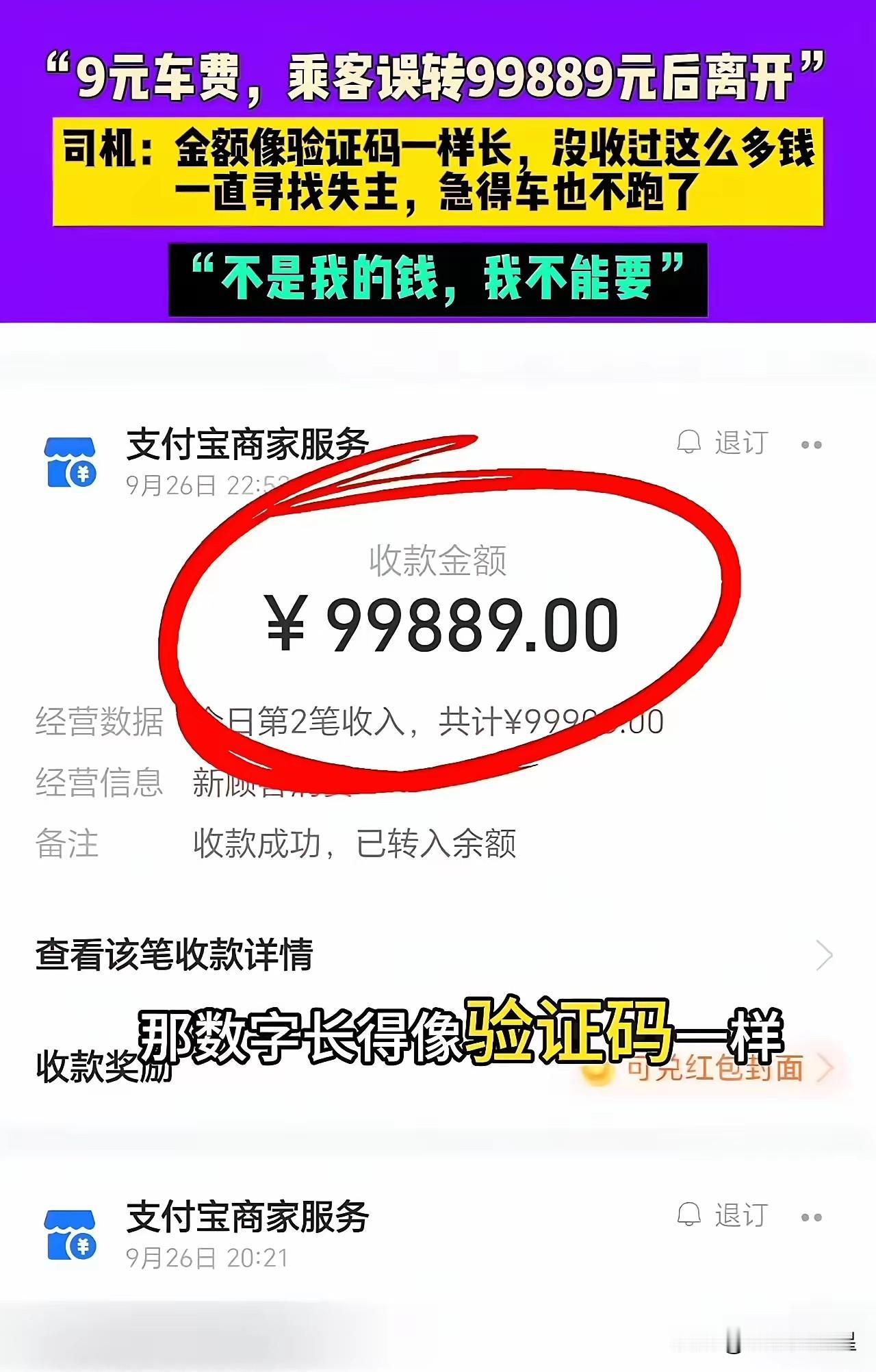 9元车费乘客误付9万多后续来了,乘客找到了,错付原因原来是这样! 日前,有媒体报