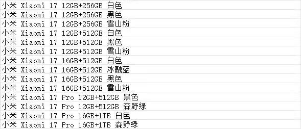 小米17,小米17Pro以下颜色内存现货,好价私询,Max目前全系列缺货。