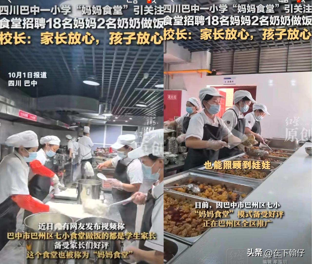 四川巴中一小学“妈妈食堂”受好评,食堂招聘18名妈妈2名奶奶做饭,将食品安全“晒”到了家长们的眼前,食堂共21名员工,其中18人为学生妈妈,2人为学生奶奶,仅厨师为专业人员。家长需通过健康体检、食品安全培训后上岗,确保符合从业资质。 尽管月薪约2200元,低于当地餐饮行业平均水平,但报名应聘的家长依然踊跃。这份工作的吸引力不在薪资,而在于——“安心”才是最重要的福利。 一边工作一边还可以照顾到孩子,工资少点也值得。 看似简单的举措,却解决了多个难题: · 对孩子: 吃得更放心,感受“家的味道” · 对家长: 提供灵活就业岗位,实现“陪读挣钱两不误” · 对学校: 建立透明食堂,赢得家长信任 我觉得很好,希望能推广,我孩子学校如果也让家长去做饭我肯定报名。有时候,最好的管理,是让利益相关者成为参与者。 你支持这样的“妈妈食堂”在全国推广吗?如果你的孩子学校有这样的机会,你愿意报名吗?欢迎在评论区分享你的观点!校园食品安全新思路