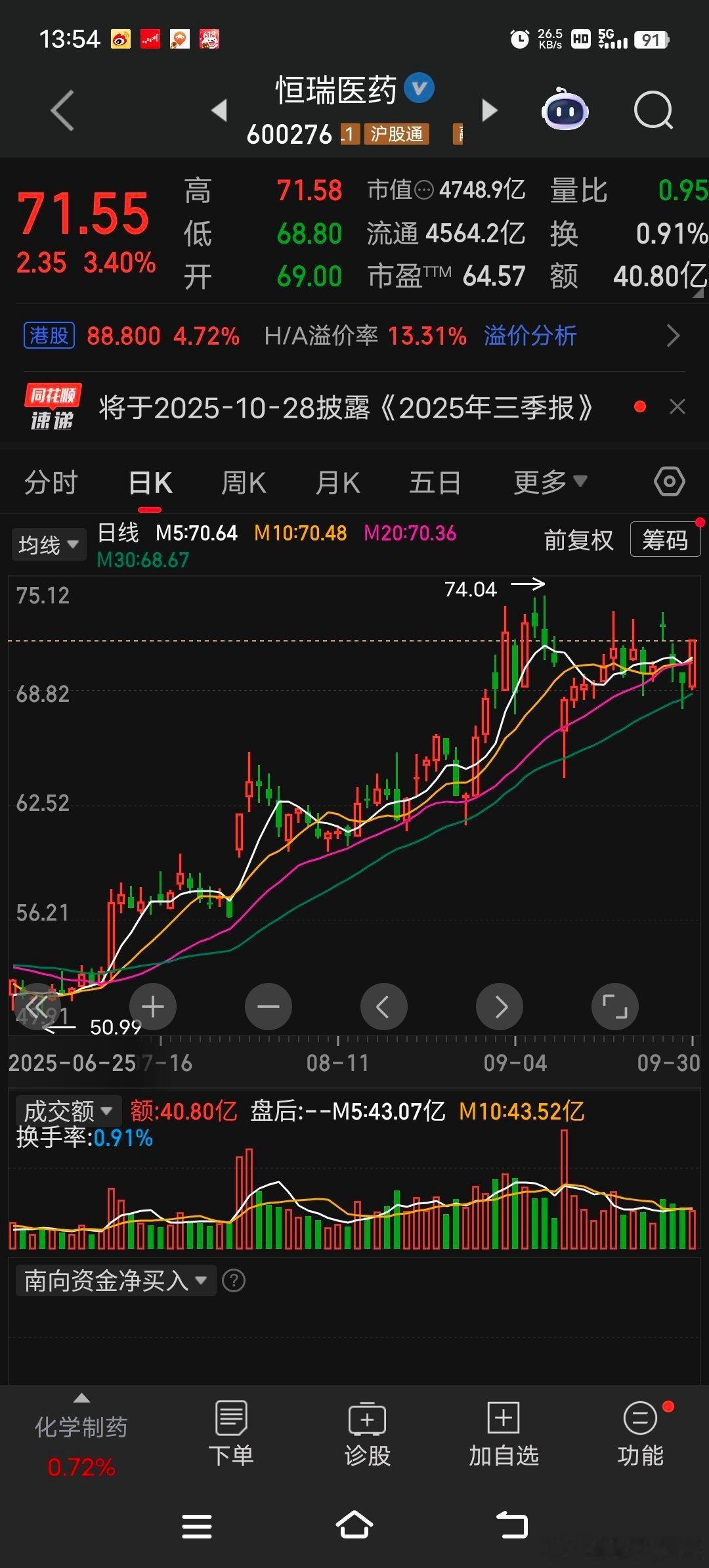 昨天恒瑞医药低开高走的趋势看,很可能有资金已经悄悄埋伏,不出意外的,节后恒瑞医药有望不断起飞,成为板块的灵魂!