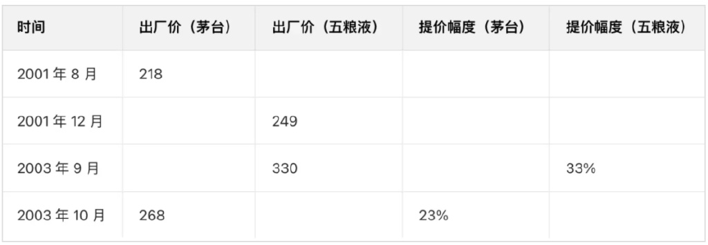 我们把历史的齿轮回拨到2002年,那时候,五粮液已经当了7年的白酒行业老大,当年的营收、利润分别为57.05亿、6.13亿,是贵州茅台营收(18.35亿)、利润(3.77亿)的近3倍、近1.7倍,而且五粮液当时的出厂价(这里指的都是两者的拳头产品)还比茅台高出挺大一截,提价幅度也比茅台大。