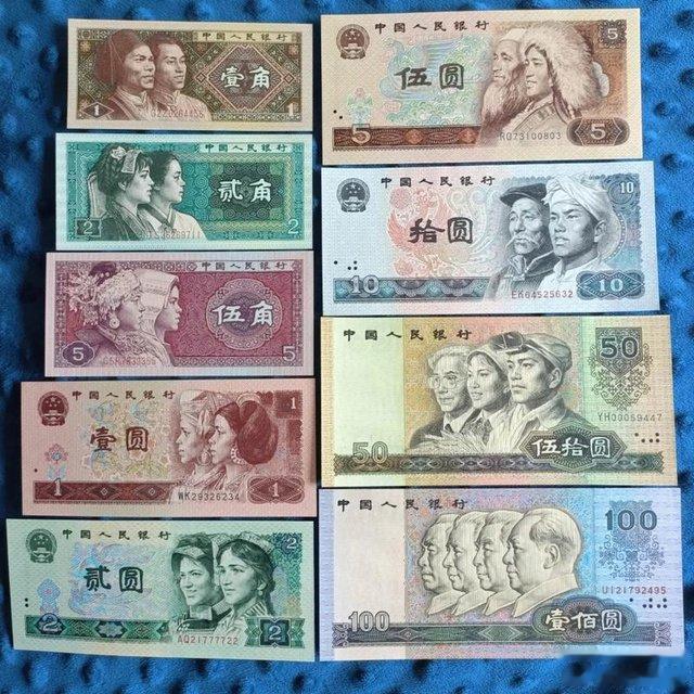 再举个例子,大家还记得第四版人民币吧,就是下图中50元、80元版本的,因为数量非常稀缺,现在的价格就较高,比同一套的其他纸币要值钱得多。未来随着时间推移,它的数量只会越来越少,价格自然就会越来越贵。