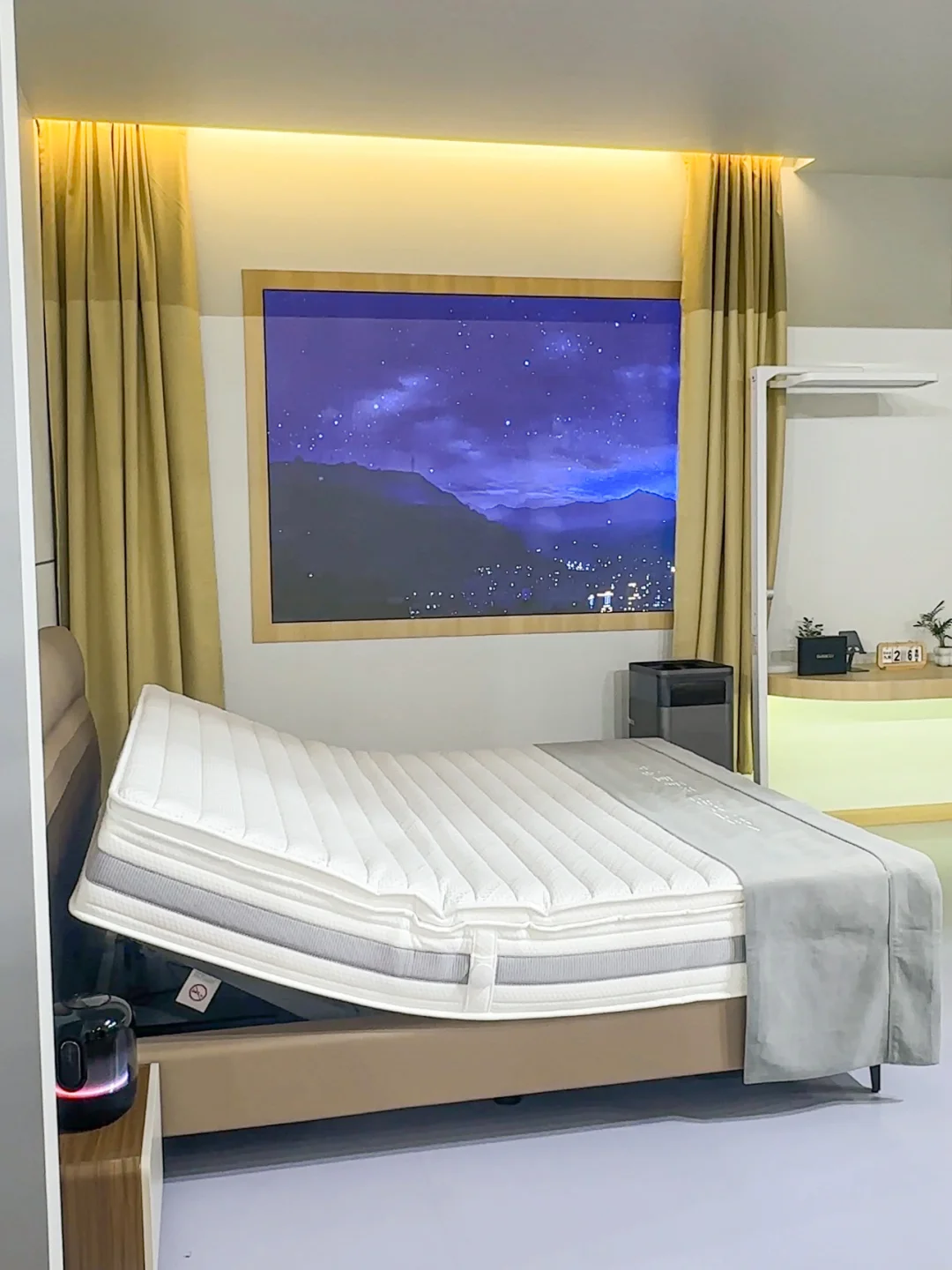 连接华为鸿蒙系统后,一句话就能控制全屋灯光、窗帘、空调,睡前仪式感拉满!还能设置“观影场景”,床垫自动抬升,灯光渐暗,影院级享受瞬间到位🎬