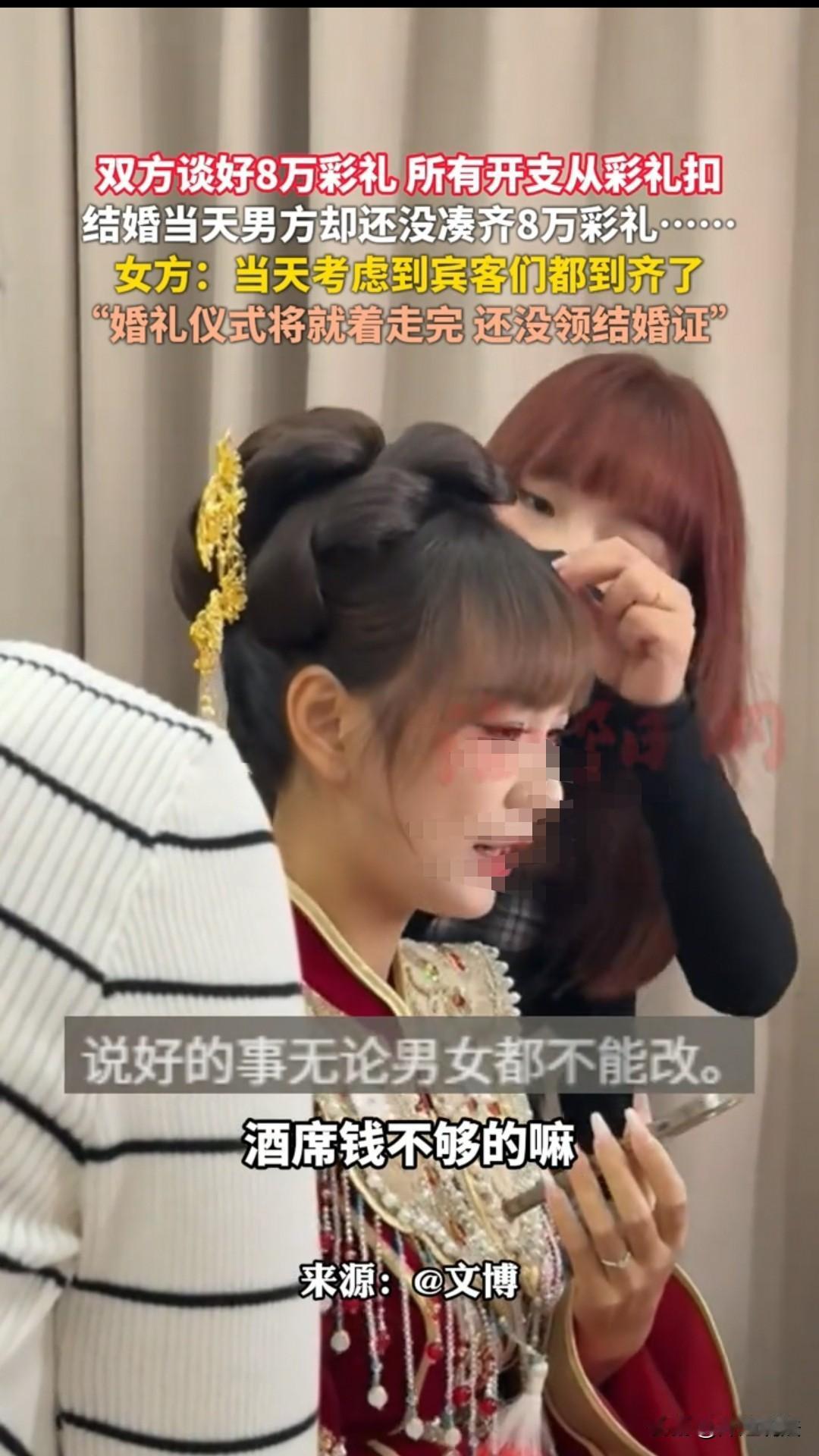 重庆,女子陪嫁18万,让男子给8万彩礼,只需要在结婚的时候摆一下,到时候除了酒席的钱就全部退给男子。男子信誓旦旦说没问题,可到了结婚当天,他给女子打来电话,说能不能先给2万,自己的款没有收回来。女子脸上瞬间挂不住了,当着那么多亲朋好友,这2万怎么摆?那不是丢自己面子吗?最后双方闹得不欢而散,女子不想和男子过日子了,可男子还在极力挽留。 素材来源于:洛阳网2025年10月1日 女子是二婚,带着一个孩子。前不久认识了男子,两人一见面就聊得特别投缘。事后,男子对女子和孩子都特别好,可以说是细心到无微不至。 家人看到男子后也比较喜欢,不管是外貌上两人都很登对,人品上男子也不差,只是经济上好像不如自己家。 不过家人和女子在这方面还不是太在意,可能就是因为自己家富裕了,就不在意别人有没有钱,只要有一颗真心就可以了。 最后,双方父母坐下来一交流,就希望他们赶紧成立一个小家庭,别再孤苦伶仃一个人,也让父母能安心一点。 最后就协商,女方家本来也不缺钱,就让男方家简简单单给个8万,到时候在他们结婚的时候摆着,让亲朋好友看一看就行了。 等结了婚,把酒席钱付了,剩余的钱都退给男方。 男方的父母和男子都特别高兴,这样既没增加父母的压力,自己也有面子,娶了个真心爱自己、家里条件还优越的女子,这得让多少人羡慕呀。 事情谈好了,酒席也定了。结婚当天,女子正喜滋滋穿着礼服化着妆,等着男子。 可男子突然给她打电话,说钱没收回来,能不能先给2万? 女子的心情瞬间不高兴了,哪有这么办事的?之前还说你细心、人品好,你这不是把我架在火上烤吗?你啥意思啊? 男子赶紧解释,我可不是那个意思,我真的是之前谈好的客户,今天确实要给我打钱过来,但不知道出了什么事,就是打不过来。 女子没说话,心已经凉到了冰点。她想到自己的亲朋好友,有很多是从大老远过来的,他们看到自己的彩礼才2万,这多让人笑话呀。 再加上,男子之前对自己好,会不会是看到两人要结婚了,就开始算计自己了?在这个时候提出少给钱,说事后再补,真的让人不得不这么想。 男子极力解释,女子完全听不进去,很生气地说,什么都是我出,你拿2万能做什么?我也不知道,我找你结婚是干啥的。 男子也只能陪笑,因为他实在拿不出钱来。他以为父母会带来,可父母以为他没找自己借钱,就以为他手头有钱,谁知道闹了个乌龙。 两人心里不愉快,也不能让亲朋好友知道,俗话说家丑不可外扬。最后女子忍气吞声,简单和男子走了一下流程,就算结了婚。 不过结了婚,她心里特别不高兴,不想和男子过了。他们本来就没领证,原本打算把订婚和结婚一起办,之后再去领证,现在女子不打算领证了。 女子特别庆幸,在这样的关键点把男子看清楚了。女子的家人也觉得,再继续下去没意义,事后补齐8万也没意义。 大家都觉得男子太不上心了:女子娘家陪嫁18万,还看着人家妹妹陪嫁了房子,其他亲戚还有大额资金支持,这样的好姑娘、好家境,居然不知道好好把握,真是不懂珍惜。 男子也知道自己错了,他本意真不想搞成这样,可就是自己太自信,以为顾客一直很讲诚信,没料到当天就是没给他转钱过来。 早知道这样,他就提前跟父母商量,让他们先垫付一下多好。 现在男子在极力挽回女子,可女子没急于回复,她还需要长时间冷静,再观察观察男子的心思——究竟当天是有心的,还是真的无意。 1、《民法典》里没有“婚约”的强制规定,男女双方口头约定“给8万彩礼摆场”,本质是“婚约期间的约定”,不算受法律强制保护的合同。 男子当初信誓旦旦答应给8万,最后只给2万,虽不构成“违法”,但违反了双方的口头约定——女子因这一违约行为丢了面子、影响婚礼,若后续不想继续相处,可主张“男子违反约定,造成了酒席、亲友招待额外费用,法院大概率会支持。 2. 从“陪嫁财产”角度:女子说的18万陪嫁,只要没领证,就还是她的个人财产,和男子没关系 《民法典》第1063条,一方的婚前财产(包括婚前准备的陪嫁)属于个人财产;且双方未登记结婚,不算夫妻,不涉及“共同财产”分割。 女子家明确说陪嫁18万,还有妹妹陪嫁房子等——这些财产不管是婚前准备好的,还是计划婚后给的,只要没和男子领证,就始终是女子或其家人的个人财产。 哪怕后续男子挽留失败,也无权要求“分割陪嫁”,女子完全能自主处置这18万陪嫁,不用受婚约纠纷影响。 对于此事,大家如何看?