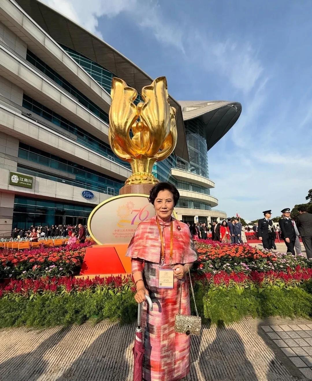 汪明荃在香港出席活动,参加国家成立76周年升旗酒会,感觉阿姐在香港演艺圈里的地位