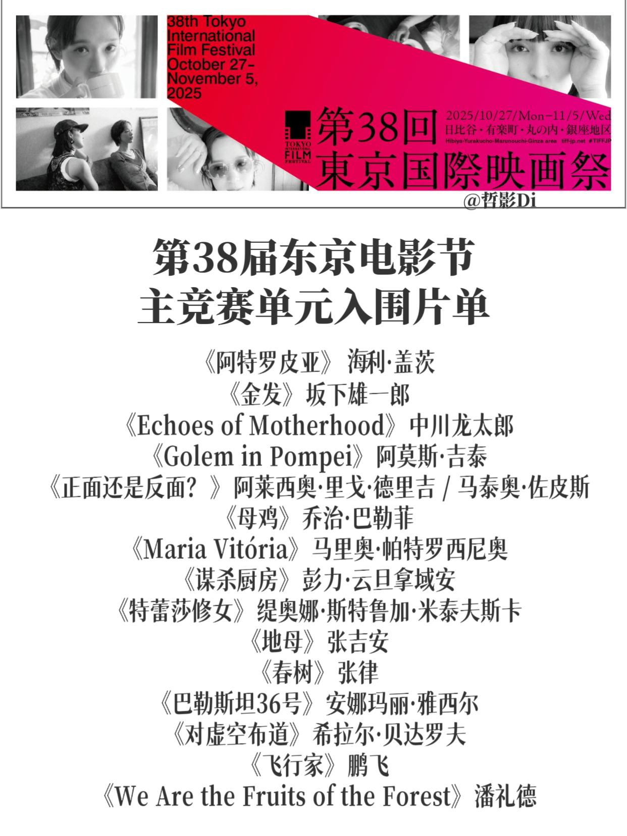 第38届东京电影节公布主竞赛单元入围片单,张吉安执导的新片《地母》,白百何、王传君主演张律新片《春树》以及蒋奇明、李雪琴合作的鹏飞新片《飞行家》入围本届东京电影节主竞赛单元。本届东京电影节将于10月27日-11月5日举行。