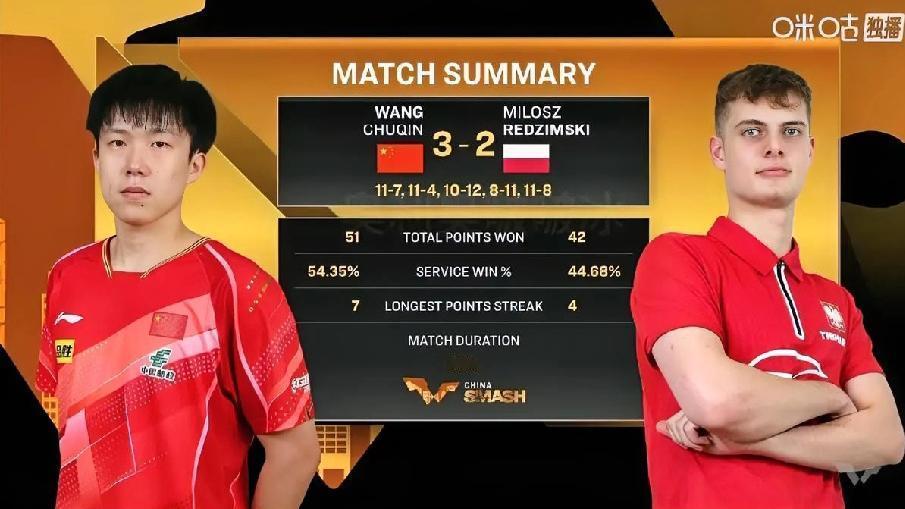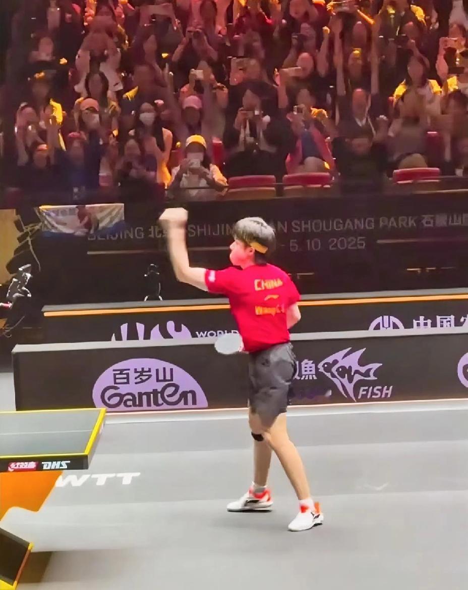 第一次看到王楚钦赢下比赛, 气愤地挥了一下拳头, 越是针对越是顽强拿下。 能全