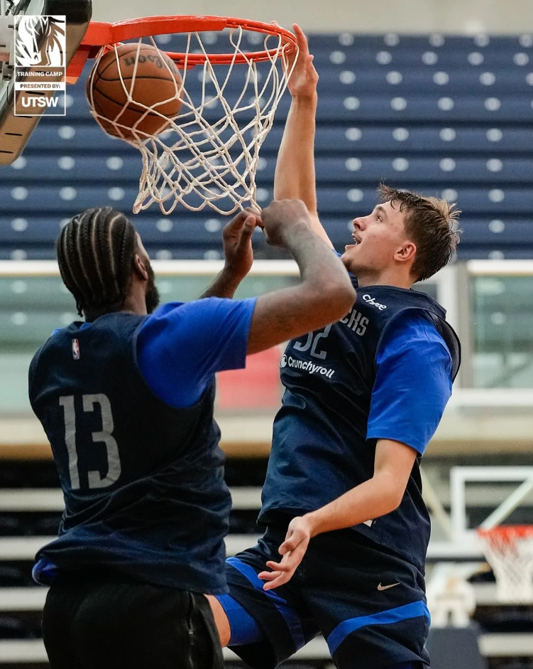 独行侠今日更新Instagram,晒出了球队多位球员训练照片。 “训练营首日已开