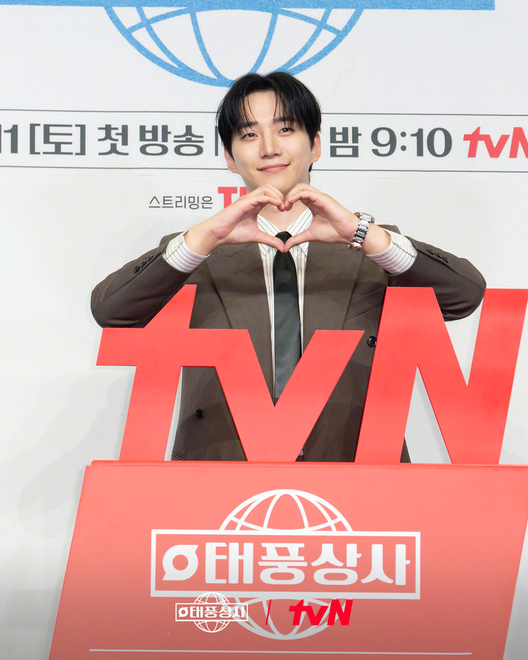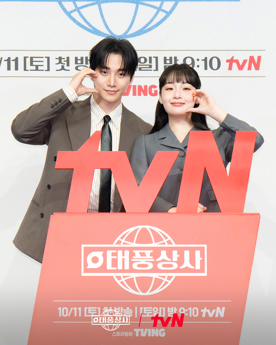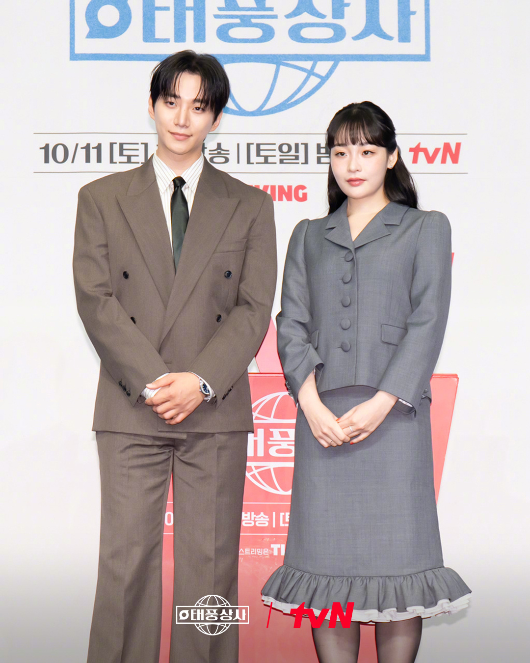 李俊昊[超话]金敏荷[超话] 出席tvN新周末剧韩剧台风商社[超话] 制作发布会。