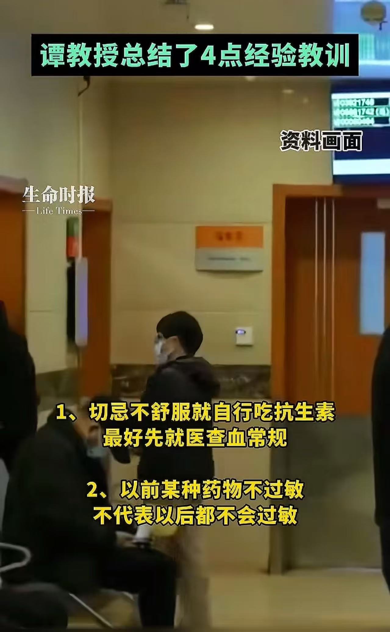 万万没想到!北京,协和医院的谭先杰教授,一辈子和药打交道,结果感冒吃了片头孢,居然把自己送进了抢救室!谭先杰教:“差点没命了!以前都是我抢救别人,从没想过我会因为吃头孢被抢救!以前吃药不过敏,不代表永远不过敏!”