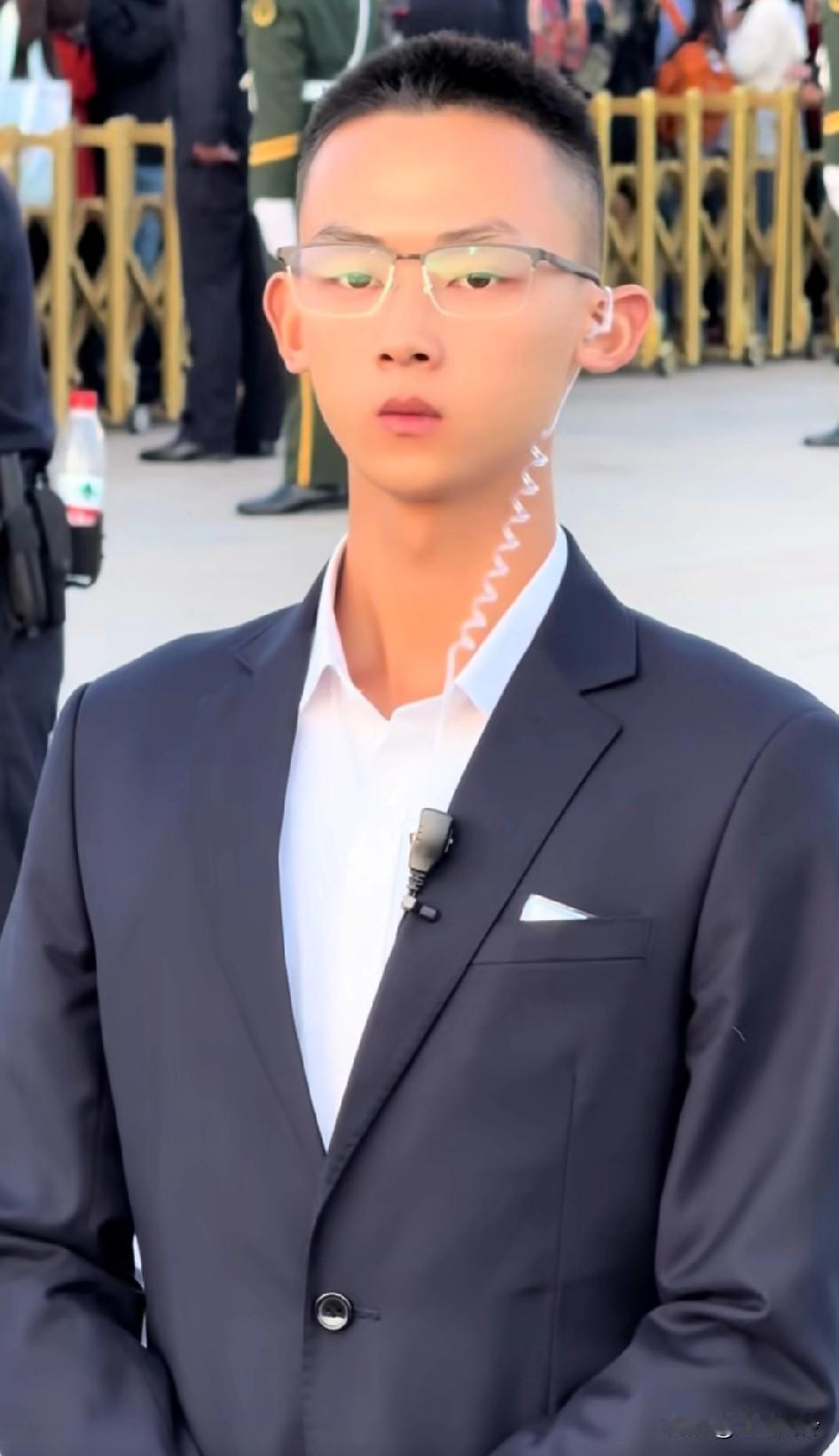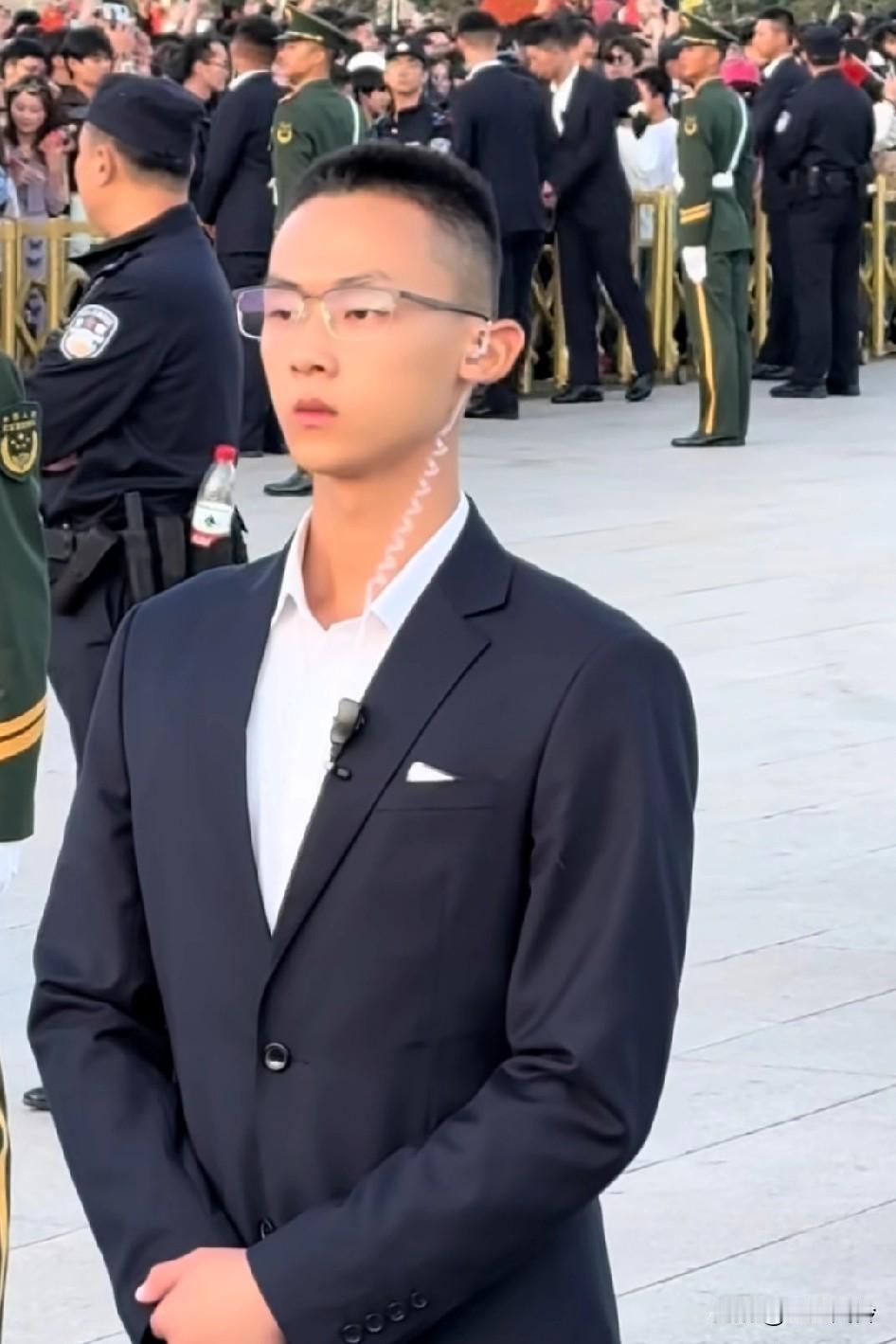 天安门最帅便衣站岗执勤,顺风耳,还有一个千里眼,绝对安全! 有没有一种可能耳机放的是郭德纲的相声 ,千万不能笑出声。眼镜应该是高科技的,可以透视的。华为新出的那款,面部识别记录实时追踪。看看他的肩宽,外套下面都感觉到了他的背肌。骨骼惊奇,眉毛上立,一看就是武林高手,想低调的埋伏都不行,一看就是当兵的,眼神站姿跟别人都不一样