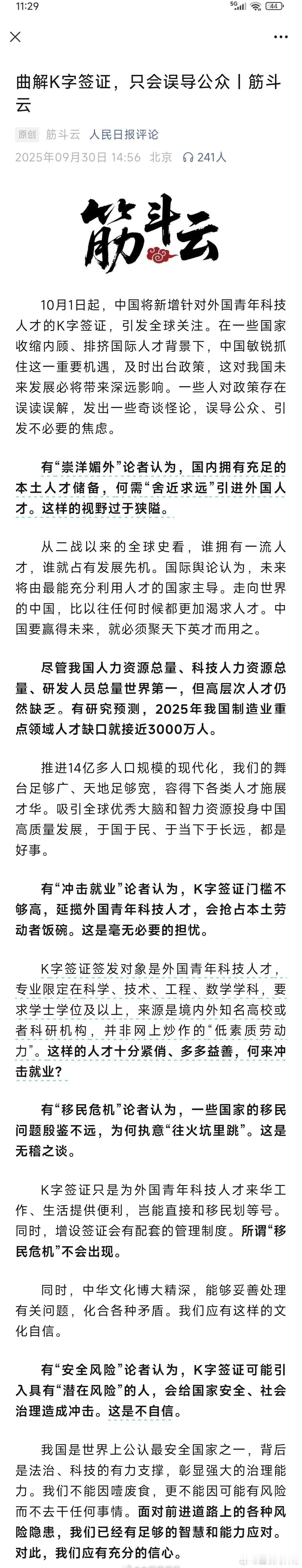 关于K字签证,官媒犀利批评反对者,尤其是崇洋媚外论者!