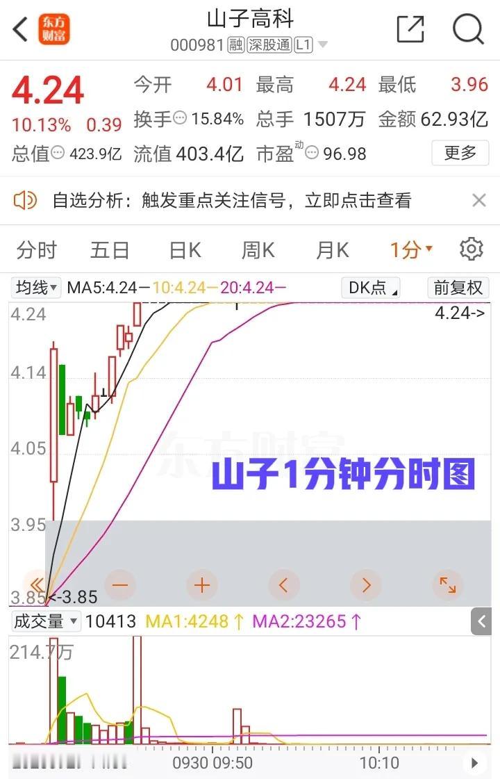 国庆干货分享:山子高科缘何能够走出强势三波表现? 毫无疑问,国庆前市场最热门的方向就是山子,这只个股自从9月中旬开始第二波强势表现后,就一直很难跌破人气榜前10名,就算是在高位连续下杀盘整的几天也不例外,这也侧面说明山子在散户心中的地位是非常高的!而现在这个市场往往就是这样,人气在就能形成合力,而山子的反转毫无疑问是9月27日周末的一则消息面,也就是哪吒汽车重整投资人唯一意向方只有山子,而它5千万的保证金成为了唯一符合要求的竞逐者,所以在26日破位下杀有支撑的情况下出现这样的消息面对于山子的刺激就非常大了,29日竞价的大幅高开就表明了资金的态度,再加上它人气一直在,产生合力的情况下顺势快速拉升封板就毫无意外了,而它缩量的涨停至少说明资金认可度是非常高的,所以个股的人气在,只要有契机,它就很容易走出非常强势的表现! 29日盘后的龙虎榜就是强势的表明资金的态度了,深股通净买入1.6亿,很明显外资对于这种预期的重组是看好的,新闸路、毛老板、章盟主和咸宁大道的豪华买盘就说明游资大佬是认可这种炒作的,而卖盘清一色的拉萨席位,毫无疑问山子反包的首板整体抛压是非常小的,多路资金是认可它重组预期的,至少说明它是有套利空间的,但是能不能持续走出来,就看隔日会不会继续有资金去接力做多了! 30日山子早盘的表现其实挺重要的,它首板毕竟是一个非常一致的缩量涨停,按照正常预期,隔日就会是更强的预期,如果特别认可这个重组逻辑会直接开一字板,但是山子竞价的表现却并没有想象中的那么强,高开4个点的表现中规中矩,并没有太多的亮点,竞价成交2.46亿的表现说明是有资金在尝试承接的,但是对于它能否强势表现还是有犹豫的,所以开盘后的表现才是山子能否走出来的关键,毕竟这种缩量首板,隔日如果开盘能够顶住分歧强承接的话,还是非常有看点的,而实际上山子开盘的表现就让人眼前一亮,开盘后是有明显资金强势做多的,重点可以参考下面的1分钟分时图,开盘第一分钟成交额8.5亿,冲高到近9个点才出现回落,之后的回踩承接就非常明显了,第二分钟最低回踩到4.07的位置后支撑明显,之后的5分钟内很难跌破这个低点说明资金是有非常强势的支撑的,之后再次出现大阳线突破走出冲击涨停就毫无疑问了! 所以山子30日早盘强势做多的表现是非常明显的,拉升后回落支撑后走出明显放量洗盘的走势,再加上山子人气度在,所以之后有资金去承接做多封板就再正常不过了,虽然之后板上是有一定分歧,但是最终都有资金迅速承接回封,所以说山子能够走出来跟早盘的强势承接是分不开的,而有承接说明是确实有资金在强势做多,而这样的表现就比较适合资金去做接力了! 30日的龙虎榜买盘深股通是做T操作,买卖盘比较平均,咸宁大道、成都系两个游资席位同样是做T操作,但是从买卖点看,都是先卖后买,反而把成本提高了,新介入的资金有世纪大道和城管希,卖盘作手新一是唯一净卖出最多的资金,而新闸路、毛老板和章盟主并没有出现在卖盘榜,很明显是格局的状态,山子盘中几次的分歧砸盘下这些资金没有选择趁机离场,至少说明山子在它们心中还是有预期的,而正逢国庆长假,在这期间哪吒汽车重整会不会落地不得而知,但是从资金的整体表现看,很明显是非常看好的,所以山子隔日继续冲高的溢价肯定有所保证,至于能不能持续连板走下去就看假期的消息面了,总得来说,没有消息或许就是好消息,毕竟在利好落地前,朦胧的炒作更加是资金更喜欢的,从华建的持续走强,吉视在731出来前后的反差,长城在九三落地后的表现,这些都说明预期的炒作才是资金最喜欢的,而一旦明确了,反而容易利好落地! 国庆时间比较充裕的,小胖会尽量坚持每天更新一些热门个股的思路,算是和大家分享和交流吧,也希望大家能够在阅读中有所收获! 文中的内容仅为分享和交流,不作为实际操作建议!