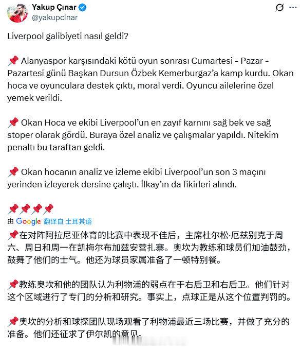 【利物浦被研究透了?】土耳其记者Yakup Cinar消息:加拉塔萨雷1比0利物浦,赛前加拉塔萨雷队主帅Okan Buruk和他的教练团队,对利物浦的球员、阵型、战术和状态进行分析,认为红军的最薄弱的环节,是他们的右后卫和右中后卫。