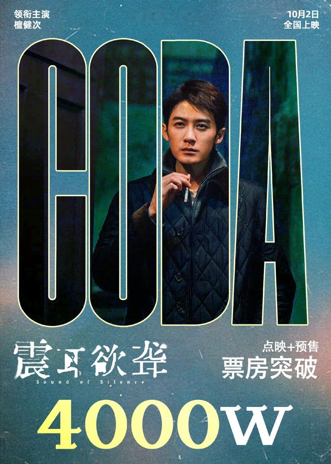 恭喜檀健次主演电影《震耳欲聋》截至目前预售票房突破4000万!🎉首映后好评如潮,明天开始点映,10月4日正式上映,已经迫不及待想见李淇了[开学季] 国庆档票房前3