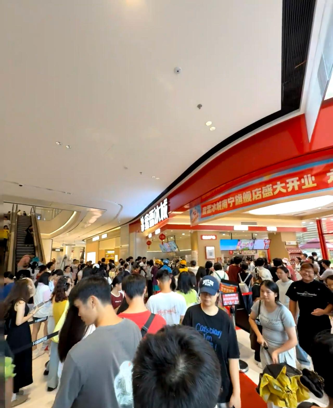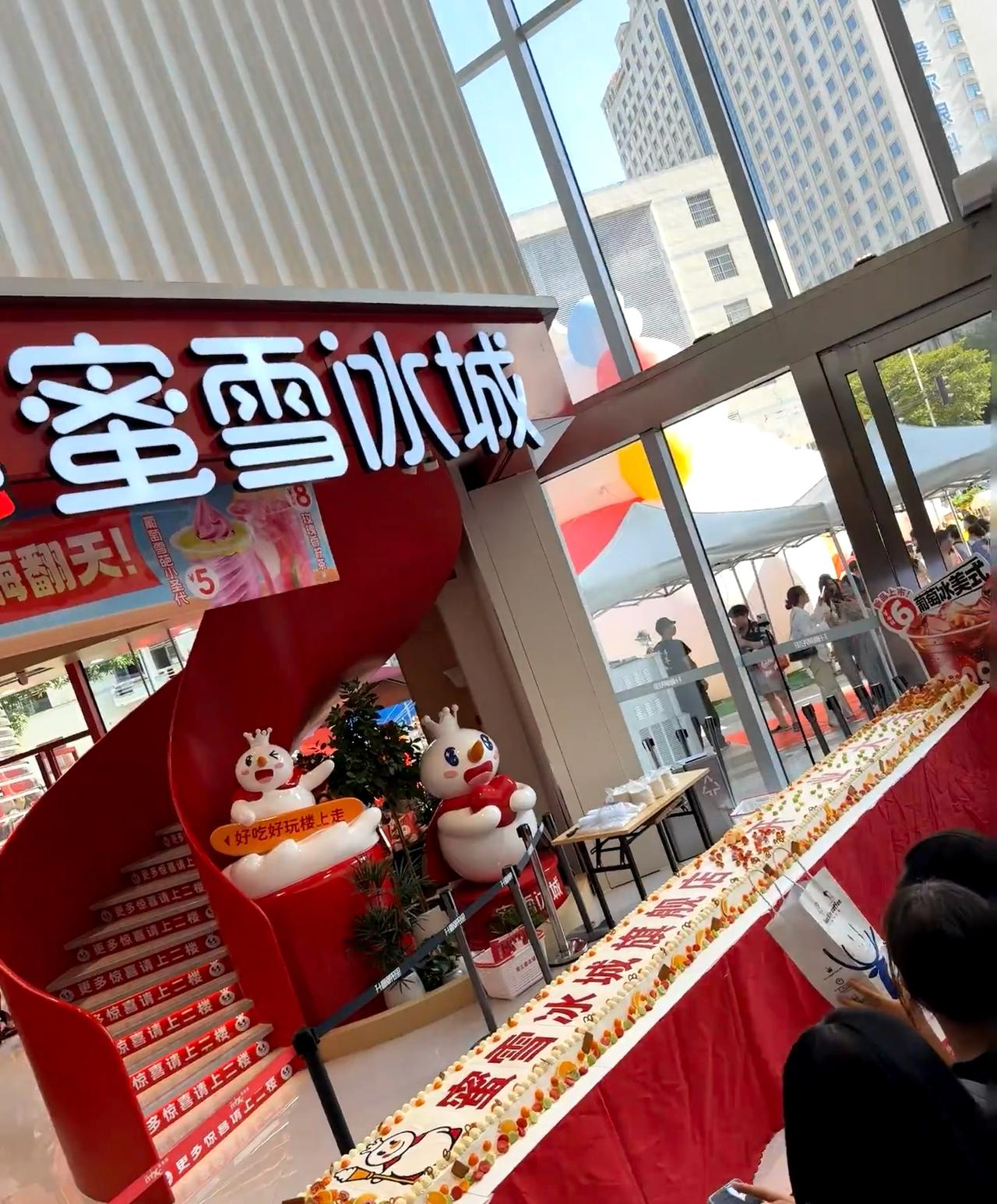 蜜雪冰城请所有南宁人吃蛋糕!!! 蜜雪你的兵来了!!! 5米2长的蛋糕!!!!免费吃!!! 蜜雪真是有心了 准备分蛋糕啦!快来