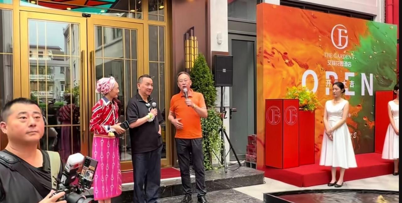 国庆节当初天,在上海新华路上的一家花园酒店开业仪式上偶遇“斯丹康”小包和大卫,这