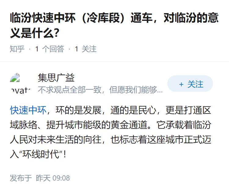 临汾快速中环(冷库段)通车,对临汾的意义是什么?