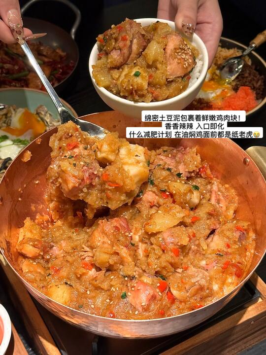 铜锅洋芋鸡一口惊艳😭黏糊糊的拌饭一绝!火烧云排不上队的真心建议可以来这里试试!还有山野包谷粑、滇南杂菌配面包、傣味香料牛肉…好多云贵川特色小吃菜品 好适合带对象或者闺蜜去吃!