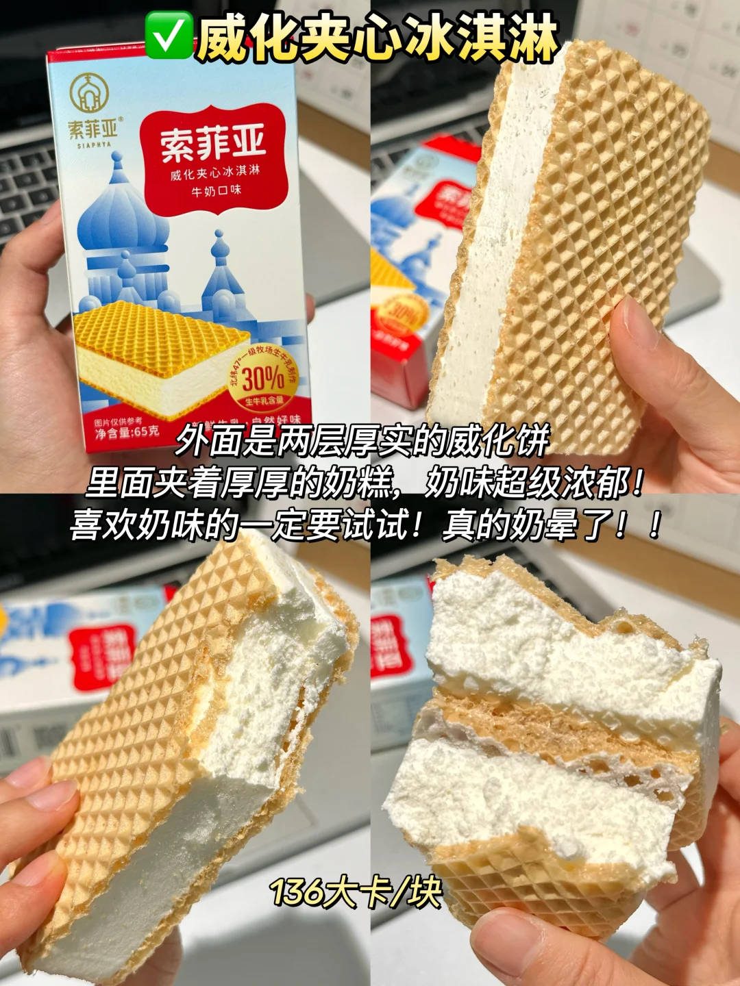 ✅索菲亚威化夹心冰淇淋 🔥136大卡/块