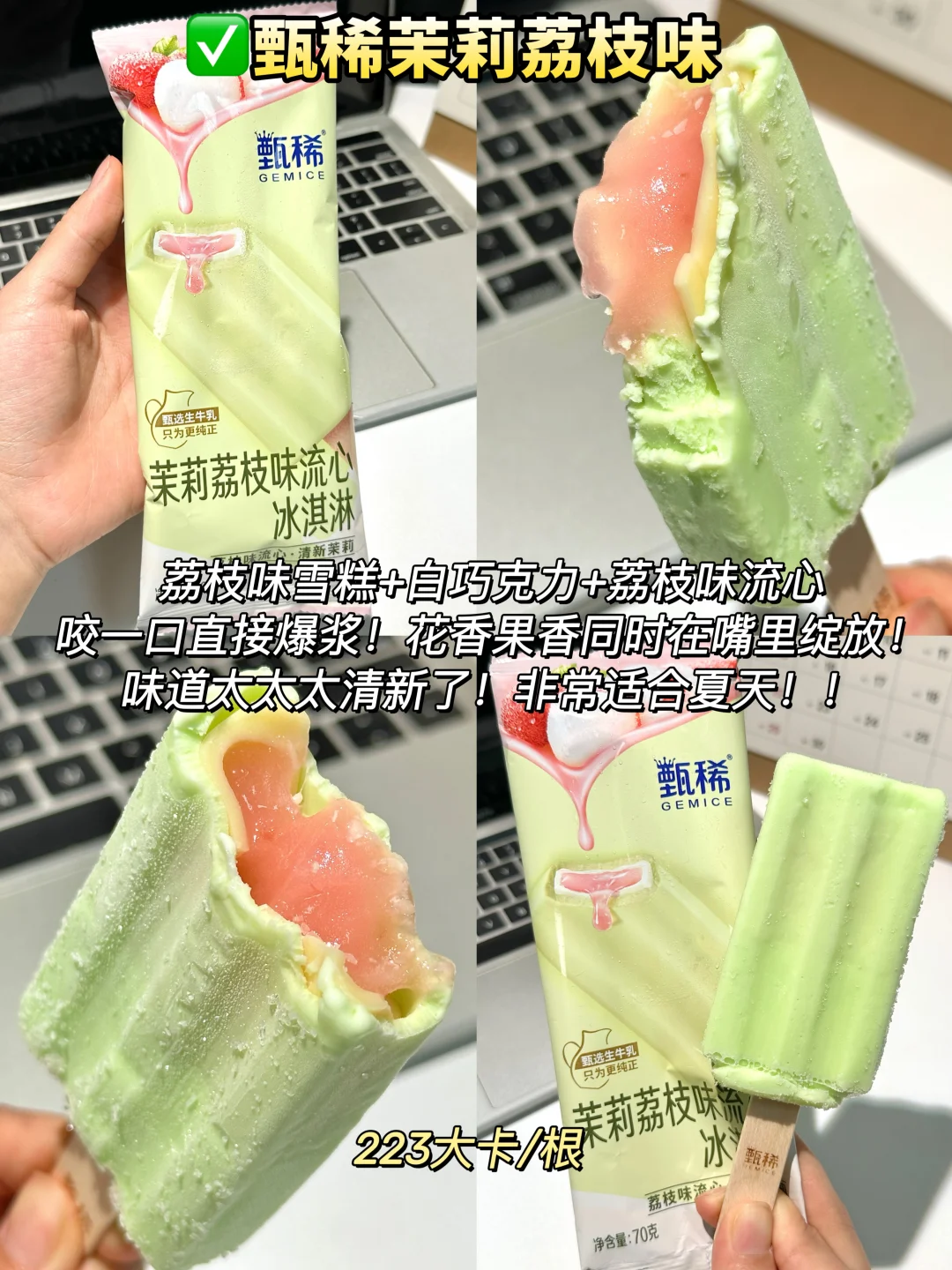 ✅甄稀茉莉荔枝味流心冰淇淋 🔥223大卡/根