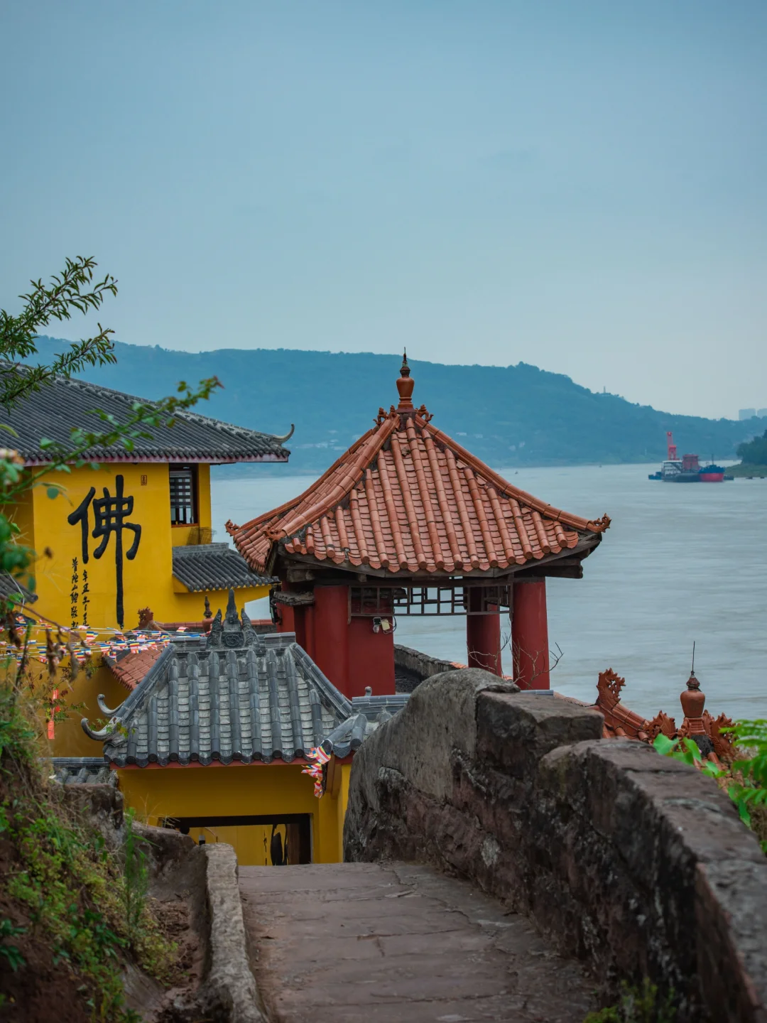 长江边的静谧古寺,色彩鲜亮,临崖而凿的佛像很有特色