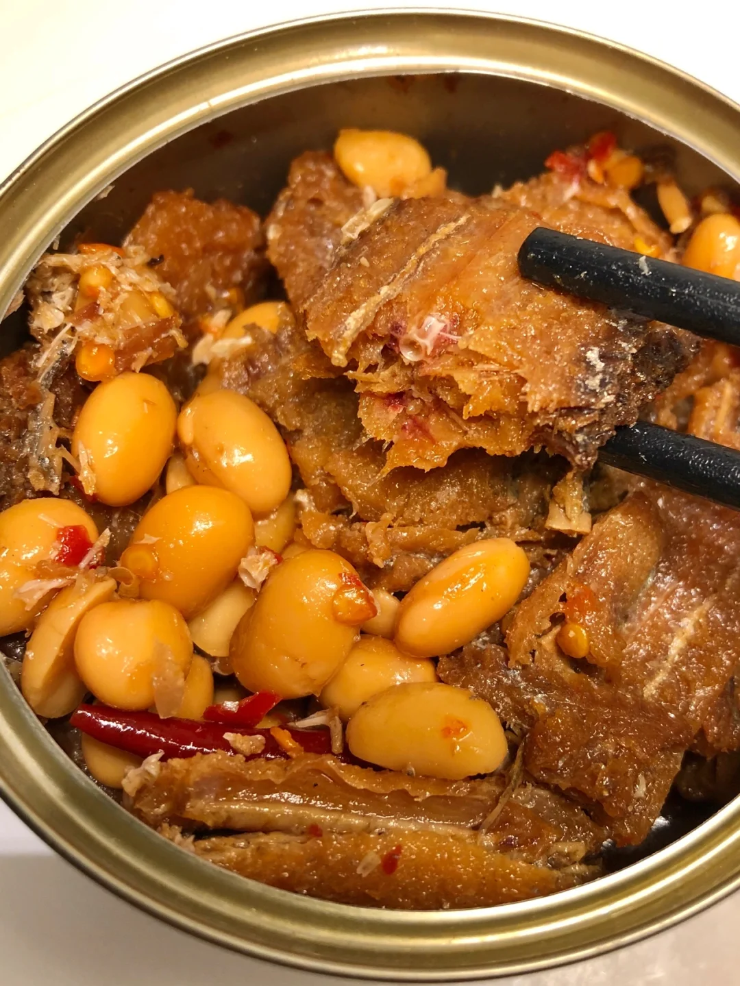 鱼肉酥到不用嚼骨头,黄豆也是软绵绵的口感